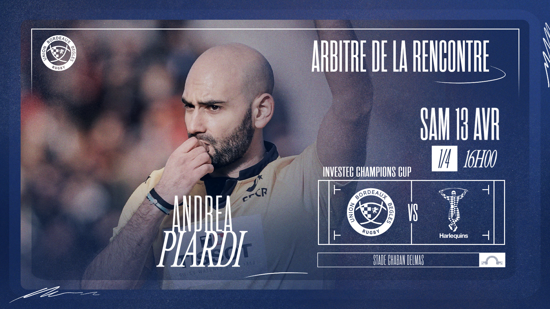 A. Piardi dirigera cette rencontre face aux Harlequins. Il sera assisté de G. Gnecchi et