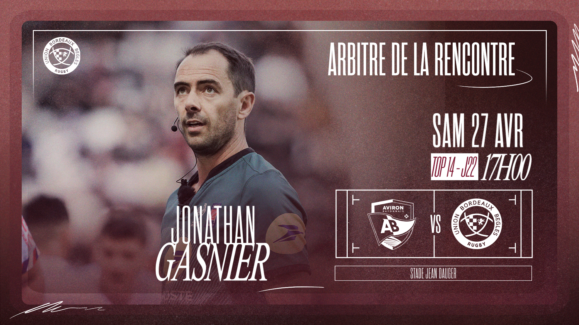 J. Gasnier dirigera cette rencontre face à l'Aviron Bayonnais. Il sera assisté de L. Cayre et S. Desvaux sur les touches ainsi que de J. Castaignede à la vidéo.