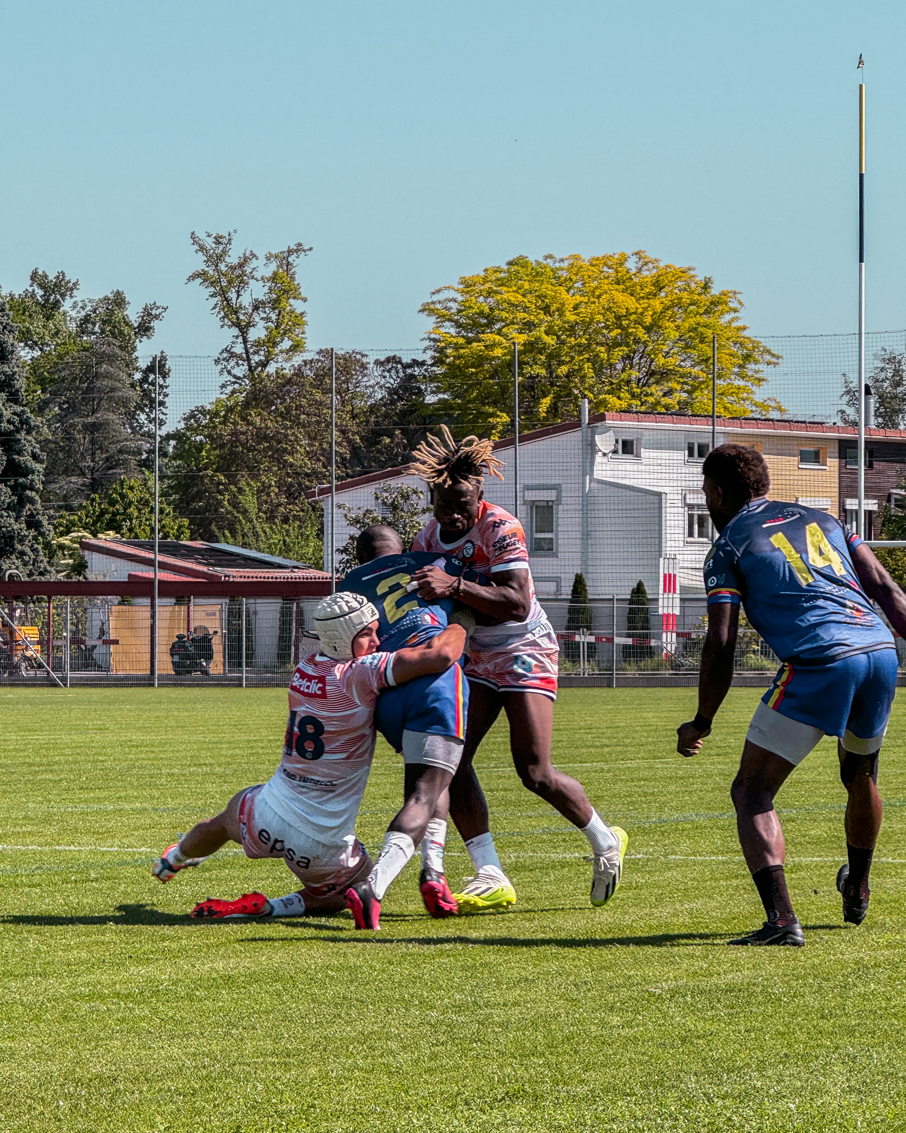 C’était donc avec encore plus d’envie que nos joueurs revenaient sur le terrain pour affronter les Polonais des Winged Hussars dans un match assez nuancé. Après une première mi-temps où les girondins peinaient à se mettre en place, la seconde mi-temps en revanche leur permettait de se ressaisir : Abdoul Gafour-Karembiri et Hugo Querillacq ajoutaient 15 points à la besace de nos Bordelo-Béglais. Fin du match 19-5.
