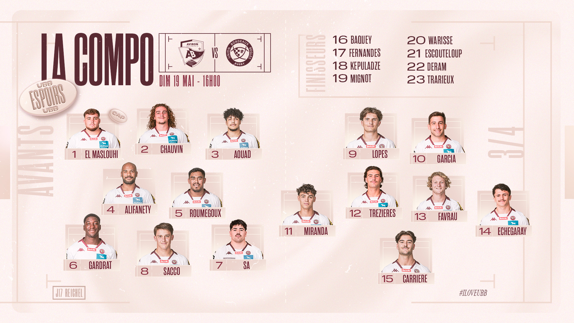 Changement complet de la première ligne avec le retour de Yahnis El Maslouhi, Léo Chauvin et Zinedine Aouad. Connor Sa passe en troisième ligne. Matéo Garcia revient dans le groupe Espoirs et sera associé à Enzo Lopes. Ronan Favrau est placé au centre tandis que Diego Miranda est titularisé à l'aile. Elliot Carrière, quant à lui, bascule de nouveau à l'aile.