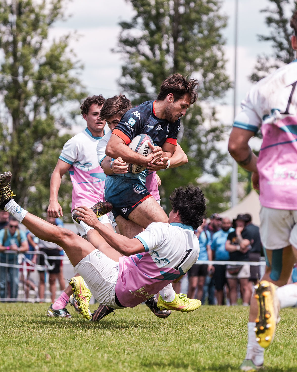 Ils jouaient ensuite leur premier match de classement rapidement après, se confrontant aux Sevens Sud Garonne. Menés 12-7 à la fin de la première mi-temps, Paul de Roquefeuil et Nathan Gagnac trouvaient finalement des solutions et notre équipe reprenait l’avantage dans une seconde période propre et efficace. Ils assuraient donc de toute manière une 4ème place au classement du circuit élite. Leur dernier match de classement avait pour enjeu la 5ème ou la 6ème place du tournoi face aux Show 7.