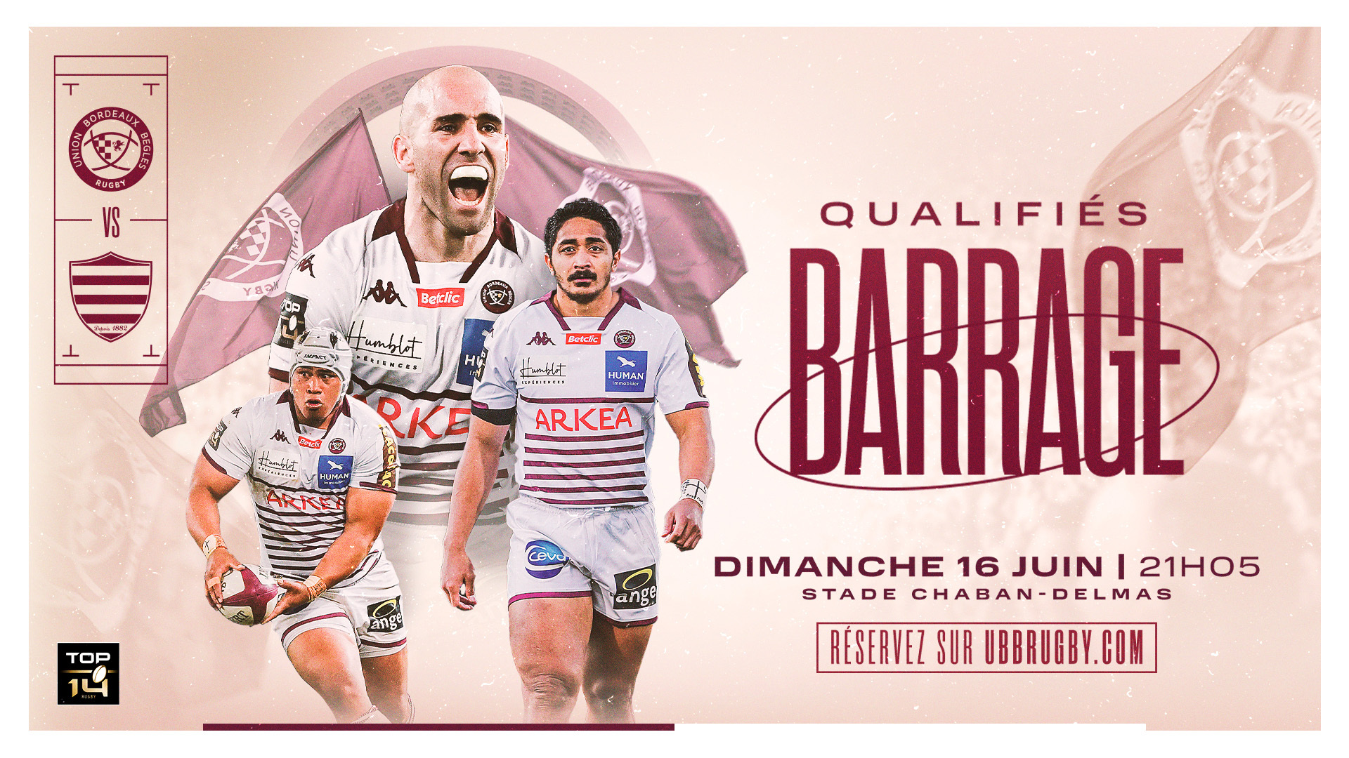 C'est dans un Chaban plein à craquer que se jouait le dernier match de la phase régulière de TOP 14. Nos girondins se sont imposés 40 à 7 dans un match contrasté. L'UBB termine à la 3ème place du classement de la phase régulière de TOP 14. Dimanche 16 Juin à 21h nous recevrons le Racing 92 pour le match de barrage. Nous vous attendons nombreux, plus que jamais nos joueurs auront besoin de vous pour tenter de se qualifier en demi-finale !