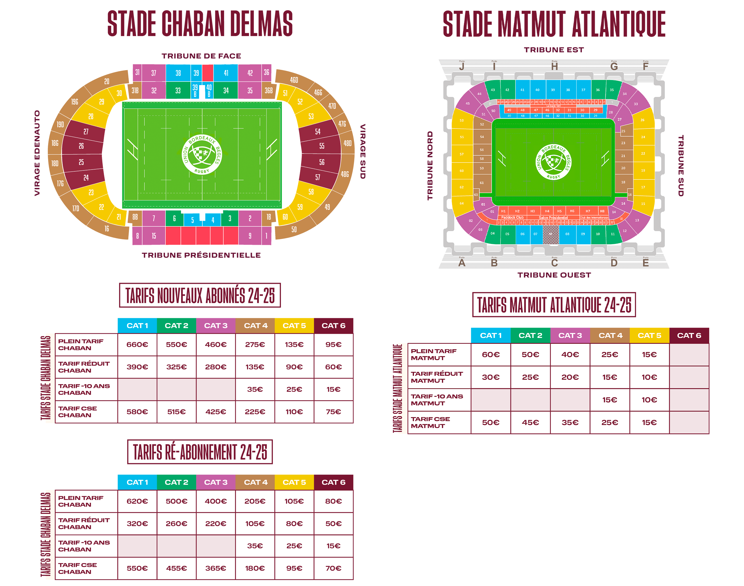 Pour les abonnements guichets, la pièce d’identité est à présenter obligatoirement au moment de l’abonnement au stade Chaban Delmas. Attention, aucune modification d’abonnement n’est possible en cours de saison.