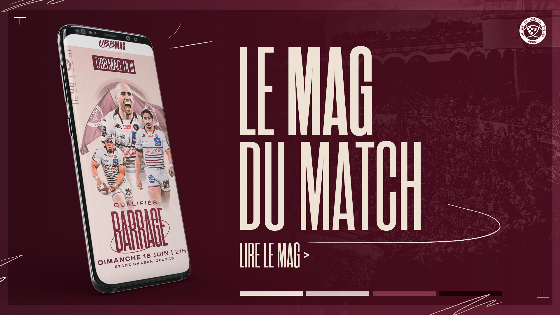 Ce week-end nos girondins reçoivent le Racing 92 à Chaban pour cette 4e phase finale d'affilée pour l'UBB en TOP 14 ! Découvrez les interviews de Jefferson Poirot et Hassane Kolingar côté Racing 92, les réponses à vos questions pour Yoram Moefana et la playlist de Maxime Lucu.