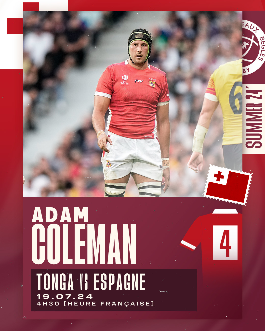 Déjà titulaires face à l'Italie vendredi dernier, ils seront à nouveau sur le terrain pour la prochaine rencontre qui aura lieu ce vendredi 19 juillet à 4h30 (heure française), où l'équipe du Tonga affrontera l'Espagne. Une fois de plus, Adam Coleman et Ben Tameifuna seront titulaires, avec Ben qui endossera le rôle de capitaine.