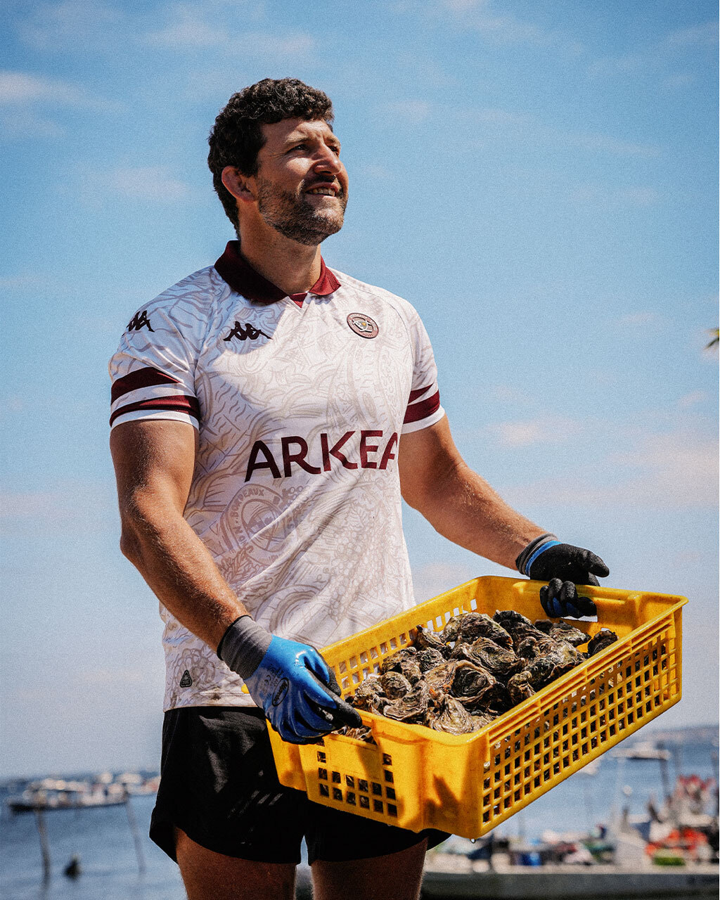 Le maillot Territoire est ici présenté par deux anciens joueurs cadres de l'UBB ayant entrepris une belle reconversion professionnelle après avoir raccroché les crampons : le centre Rémi Lamerat désormais vigneron, et Clément Maynadier, joueur le plus capé de l'histoire du club, tout juste retraité du rugby et reconverti dans l'ostréiculture. À travers ces images, et au-delà de ces deux métiers traditionnels liés à notre terroir, des valeurs fortes : la volonté, le travail, la transmission.