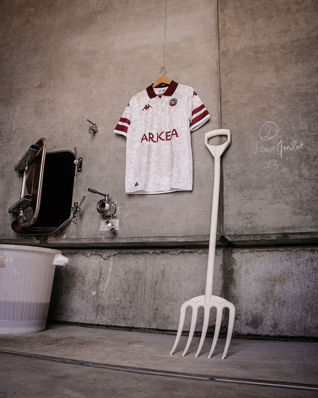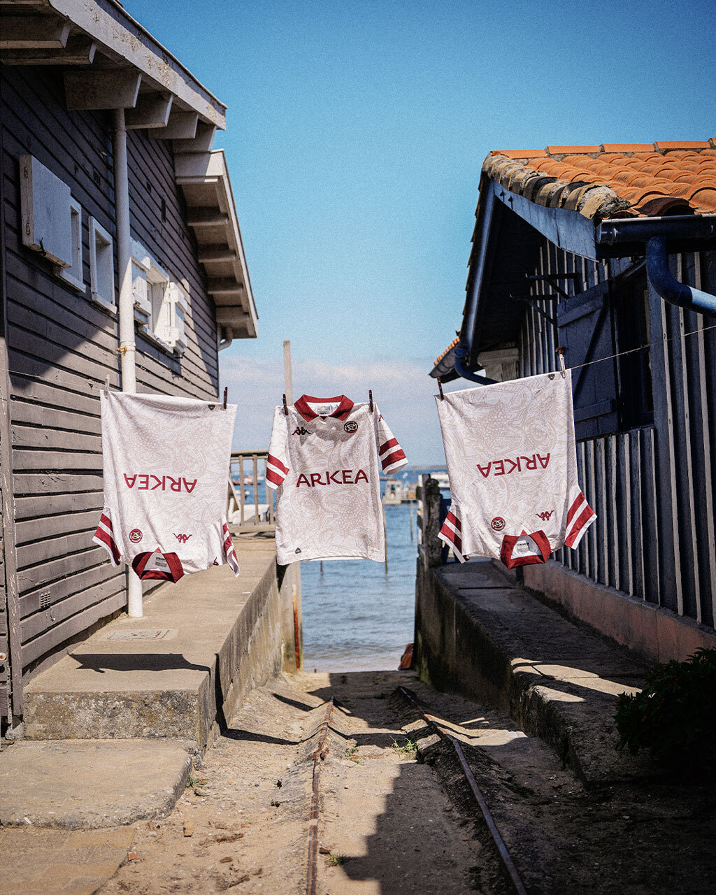 Le maillot Territoire invite à la contemplation de nos espaces. Au départ de Bordeaux et son cœur historique, en faisant un crochet par Bègles et son stade André Moga où siège le CEVA Campus, en passant par le marché pour trouver la morue et la botte de radis si chères aux Béglais, la balade se poursuit par les vignes de la grande région bordelaise, où feuilles de vigne et grappes de raisin forment un duo indissociable.