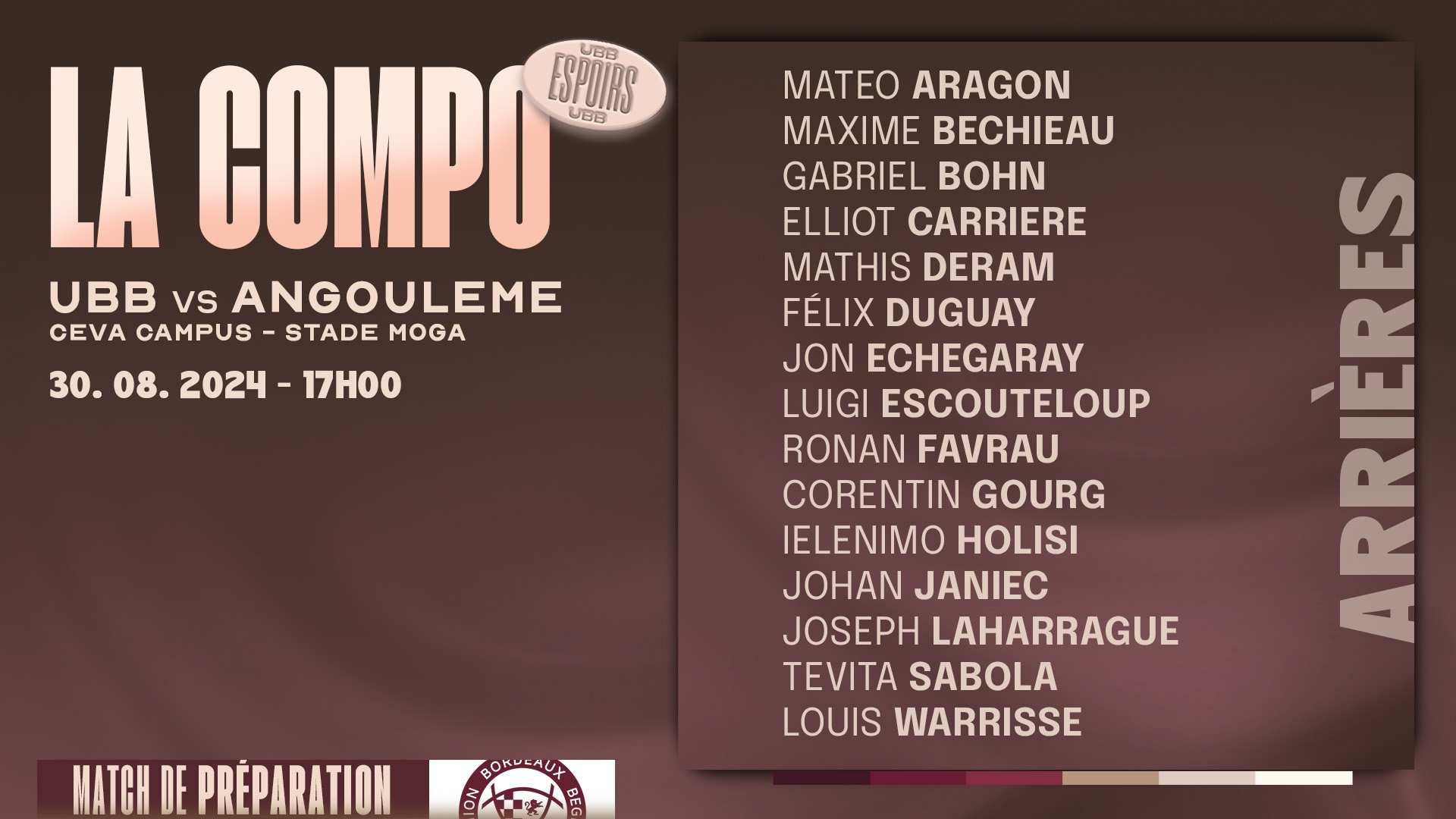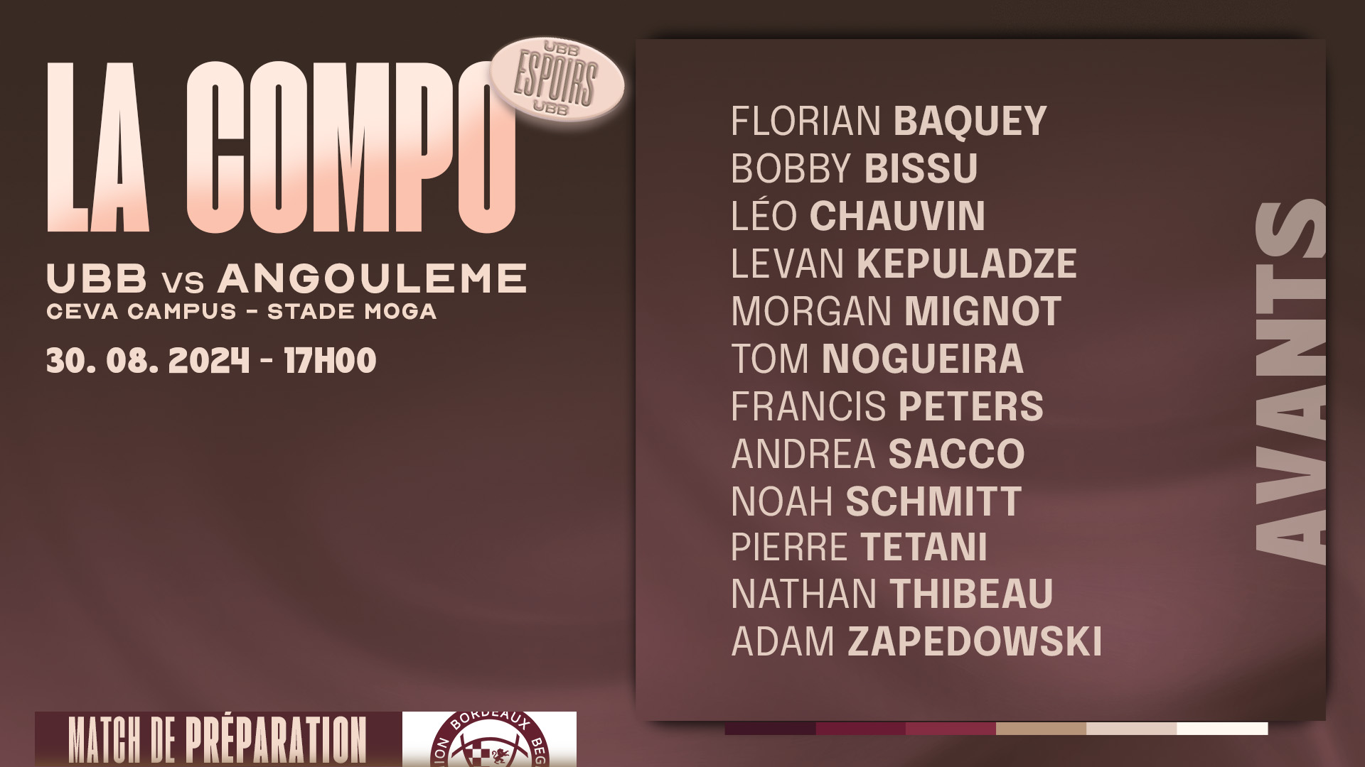 Frédéric Garcia et son staff sportif ont dévoilé les 27 Espoirs qui affronteront Angoulême pour le match de préparation de ce vendredi, à 17h au CEVA Campus - Stade Moga.