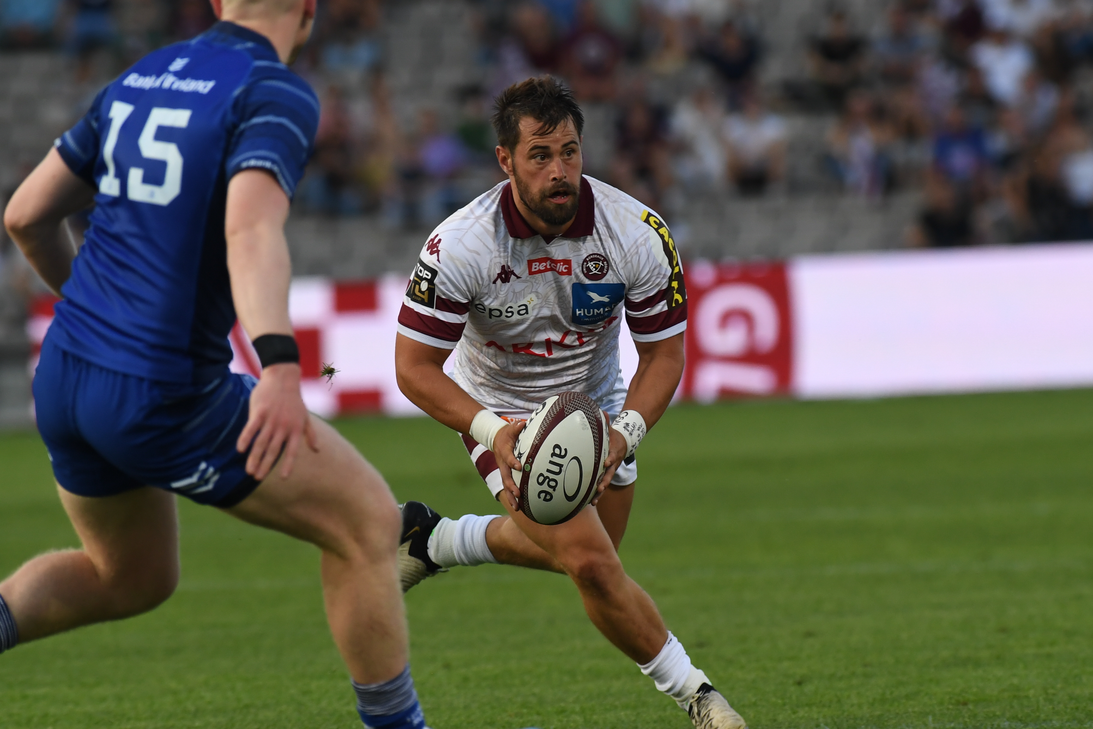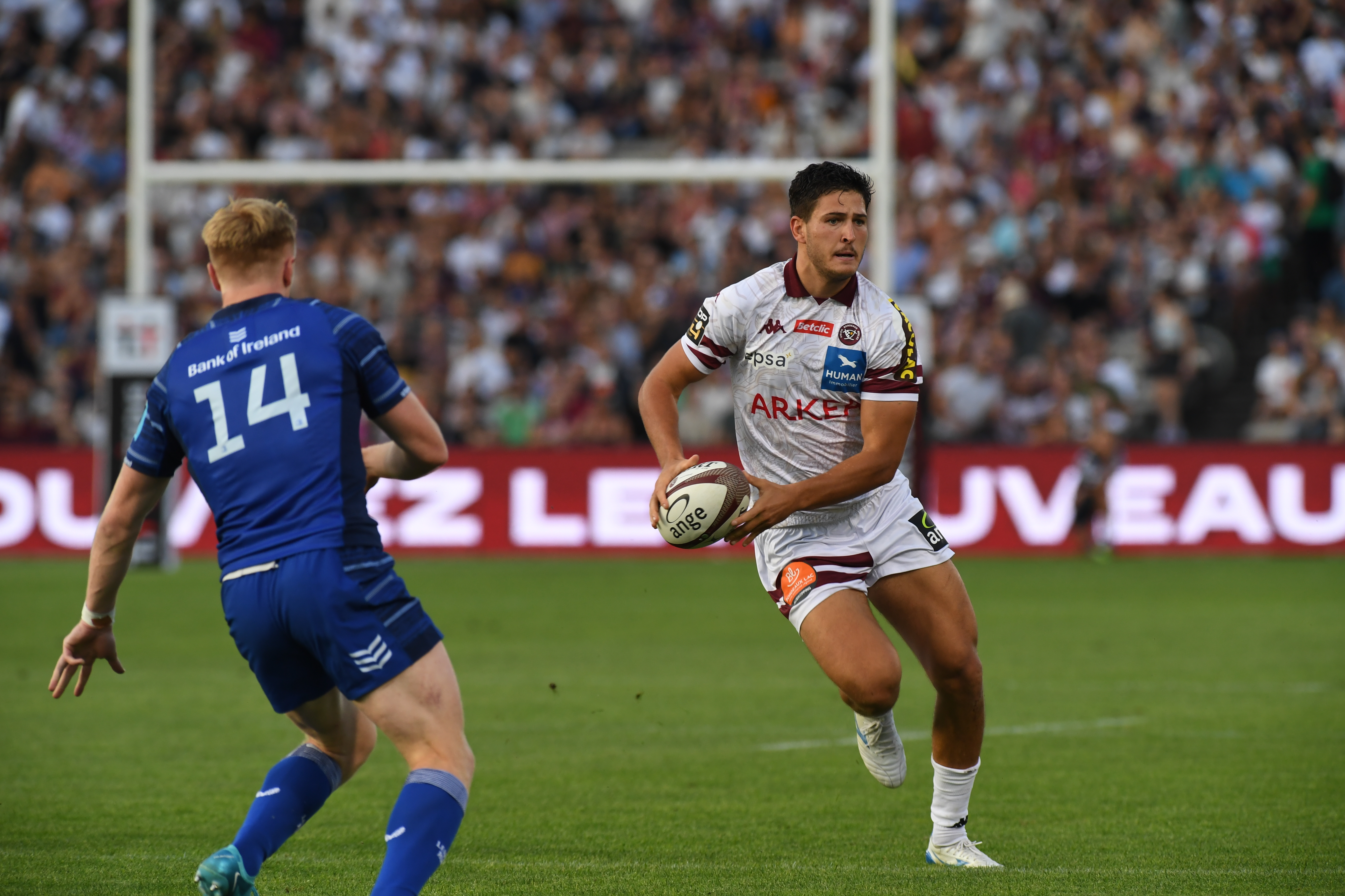 Pour son second et dernier match de préparation l'UBB accueillait la mythique province irlandaise du Leinster, finaliste de la dernière Champions Cup face au Stade Toulousain et multiple champion d'Europe. Si les Bordeaux & Blanc attaquaient la rencontre pied au plancher et étaient tout proche de marquer d'entrée de jeu par leur capitaine Maxime Lucu se sont les irlandais qui marquaient entre les poteaux suite à une interception de leur leur ailier Rob Russell à la 8e. Arthur Retière lui répliquait 2 minutes plus tard après une belle action sur le -côté droit et l'UBB revenait à 7-7 après 10 minutes de jeu.