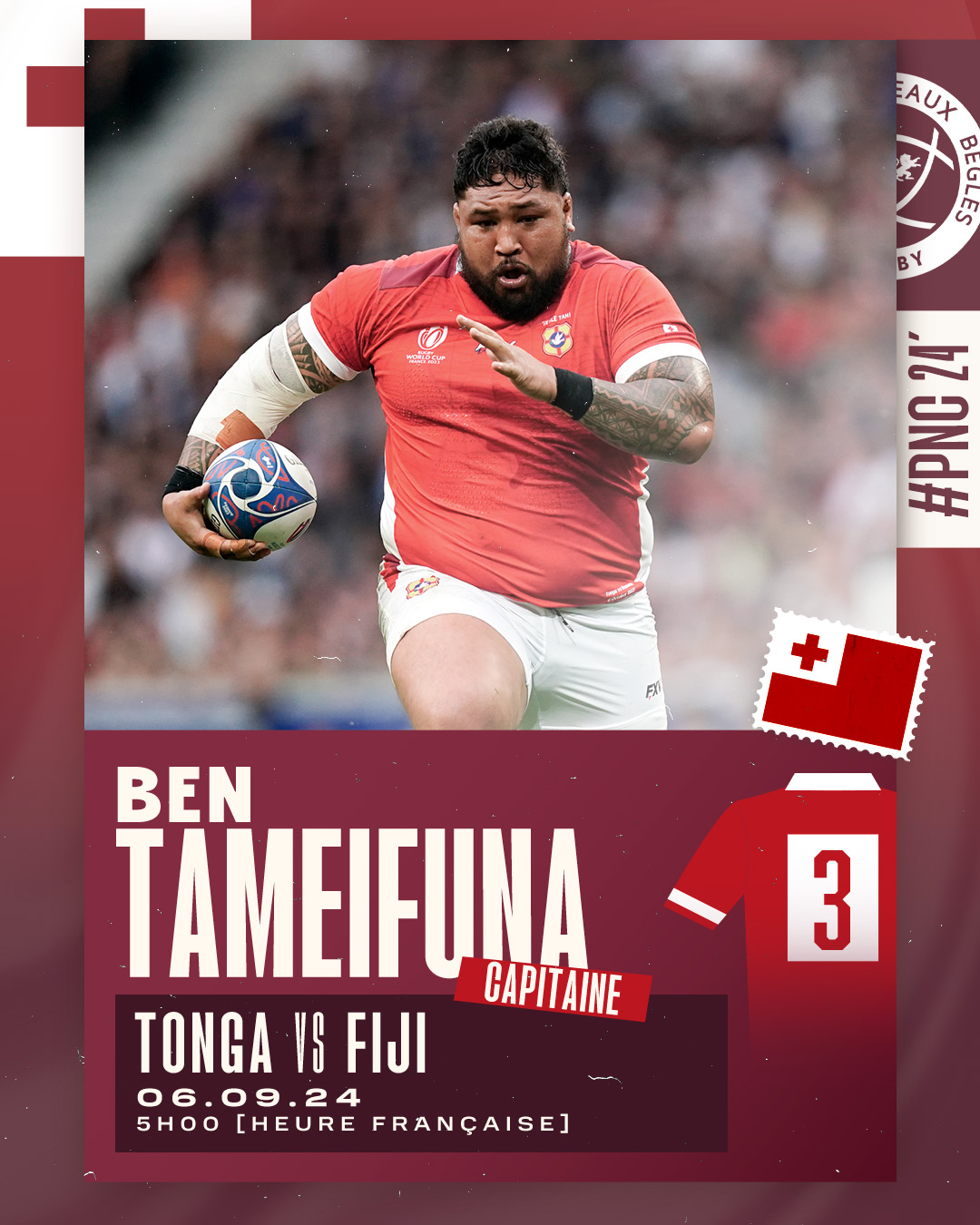 Ben Tameifuna titulaire et capitaine pour le dernier match de poule des Tonga dans la Pacific Nations Cup.