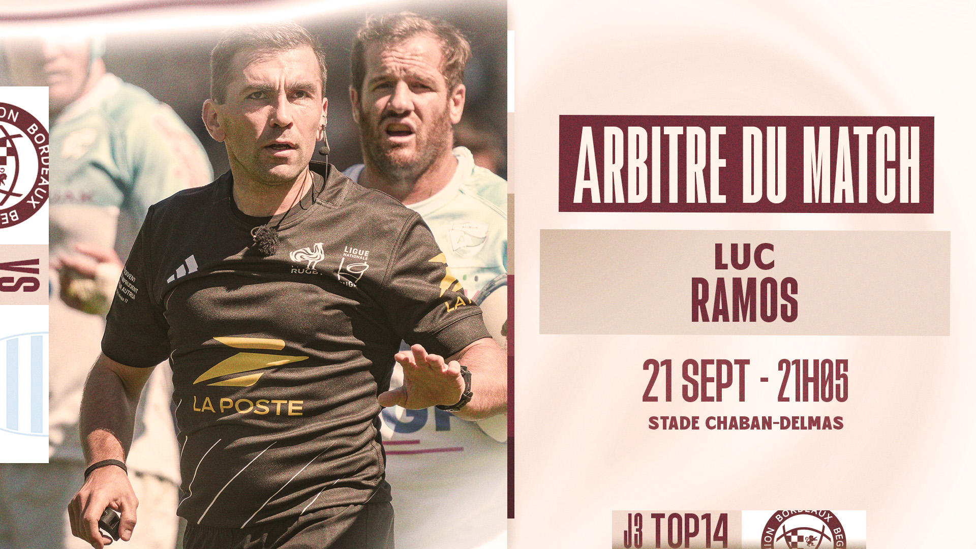 Luc Ramos dirigera cette rencontre face au Racing 92. Il sera assisté de E. Urruzmendi et C. Bultet sur les touches ainsi que de J. Castaignède à la vidéo.