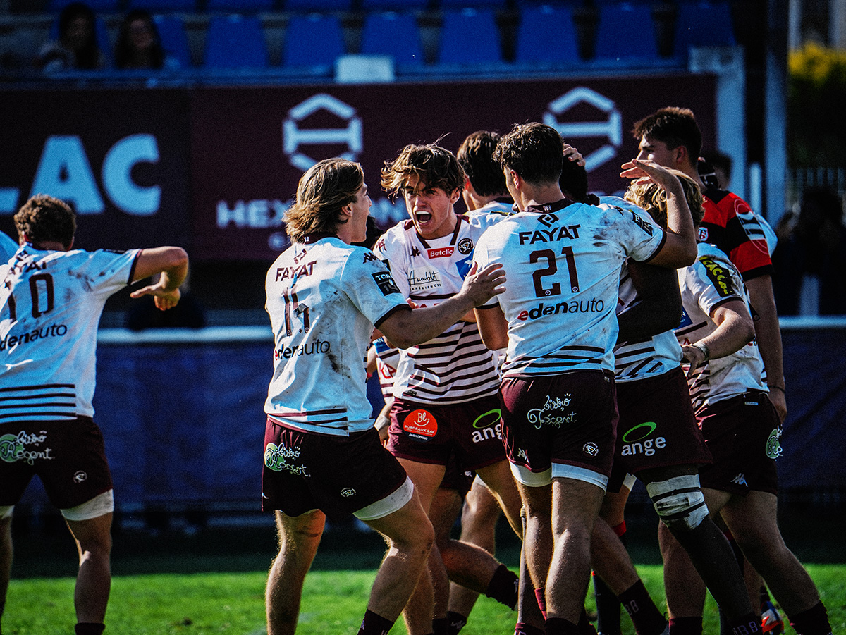 Le pack d'avants girondin mettait Rouen en difficulté et permettait à nos joueurs de marquer deux nouveaux essais en seconde mi-temps, par Léo Chauvin et Andrea Sacco.