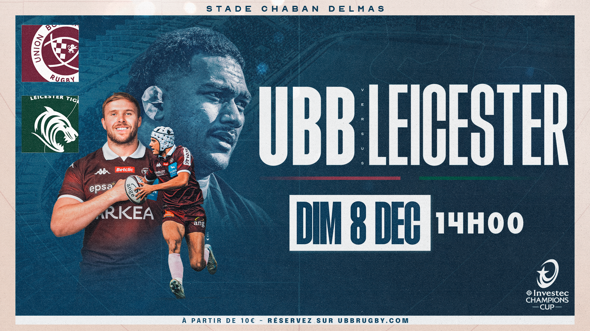 La billetterie pour les réceptions des Leicester Tigers et des Sharks de Durban en Investec Champions Cup est ouverte ! Rendez-vous à Chaban le dimanche 8 décembre à 14h00 pour le choc face aux anglais et le dimanche 19 janvier à la même heure pour la réception des sud-africains.