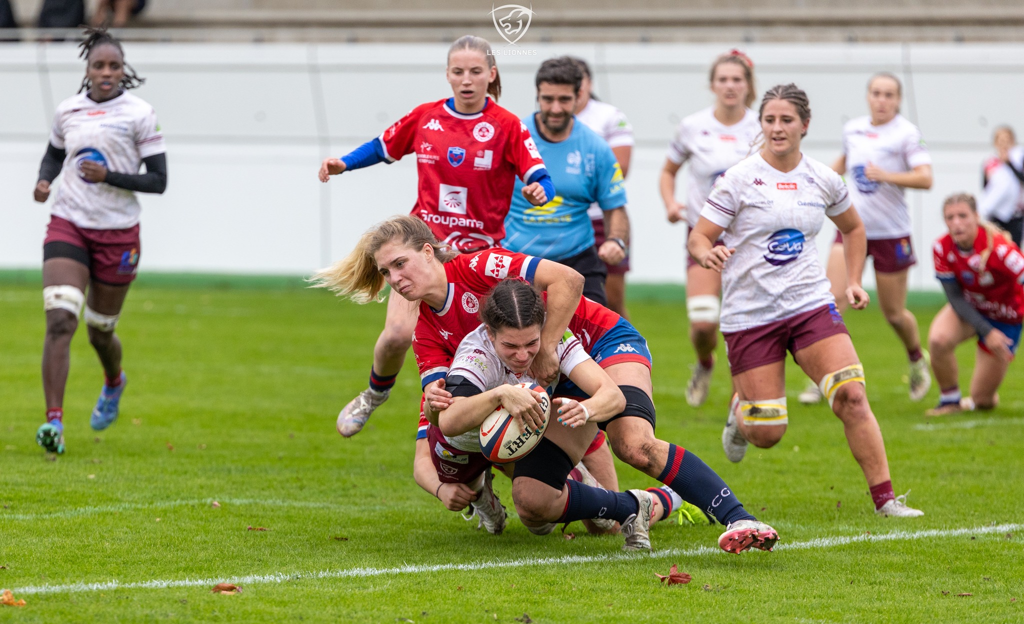 Nouveau match à domicile pour les Lionnes, qui recevaient ce week-end le FC Grenoble Amazones dans le cadre de la 6e journée du TOP 14. Une rencontre maîtrisée par les Bordelaises, qui se sont largement imposées sur leur pelouse avec un score sans appel de 40 à 10.