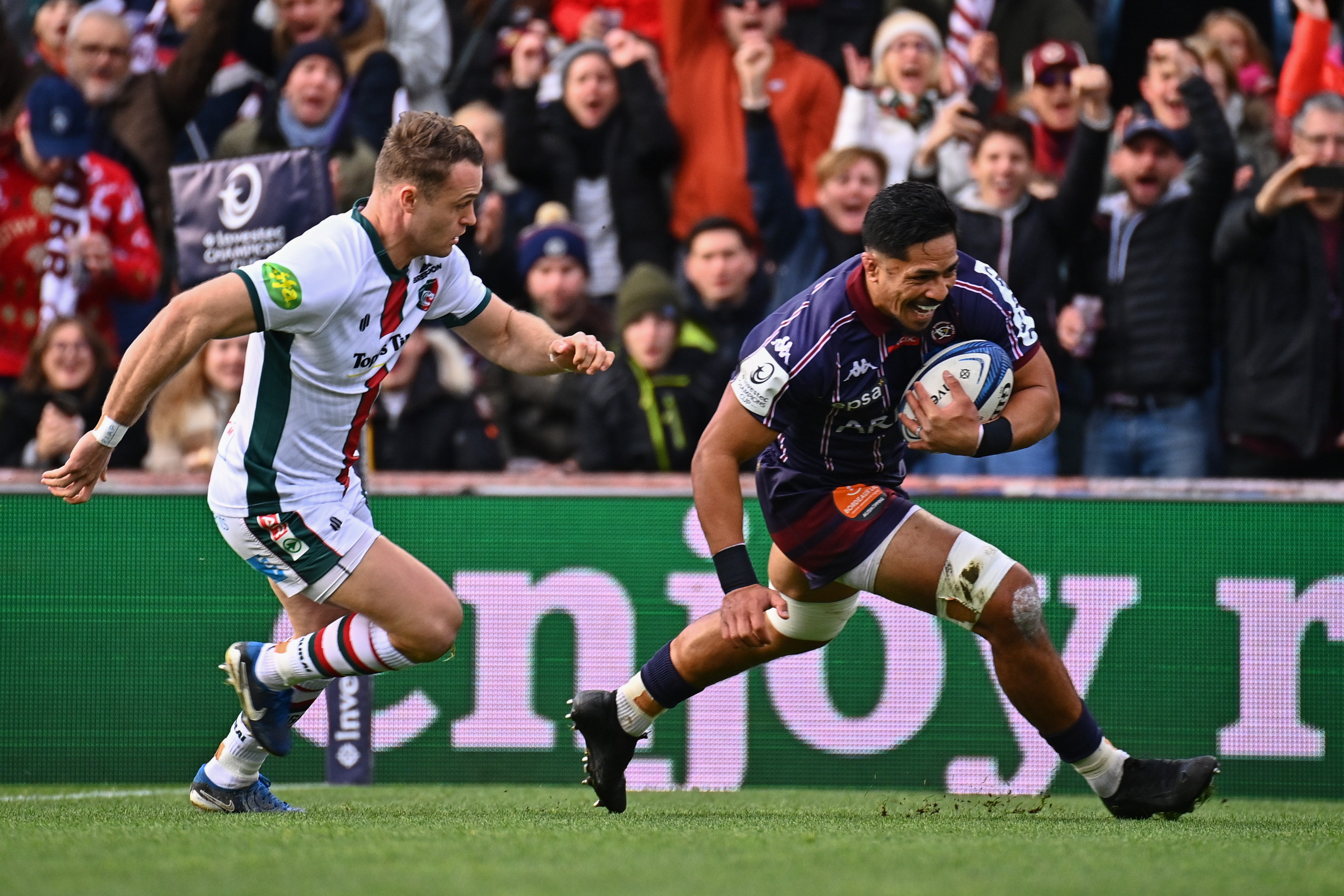 La Champions Cup faisait son retour à Chaban avec la réception des doubles champions d'Europe anglais de Leicester. Les Bordeaux & Blanc s'imposent finalement avec le bonus 42-28 après une belle seconde période où ils auront marqué 4 essais.