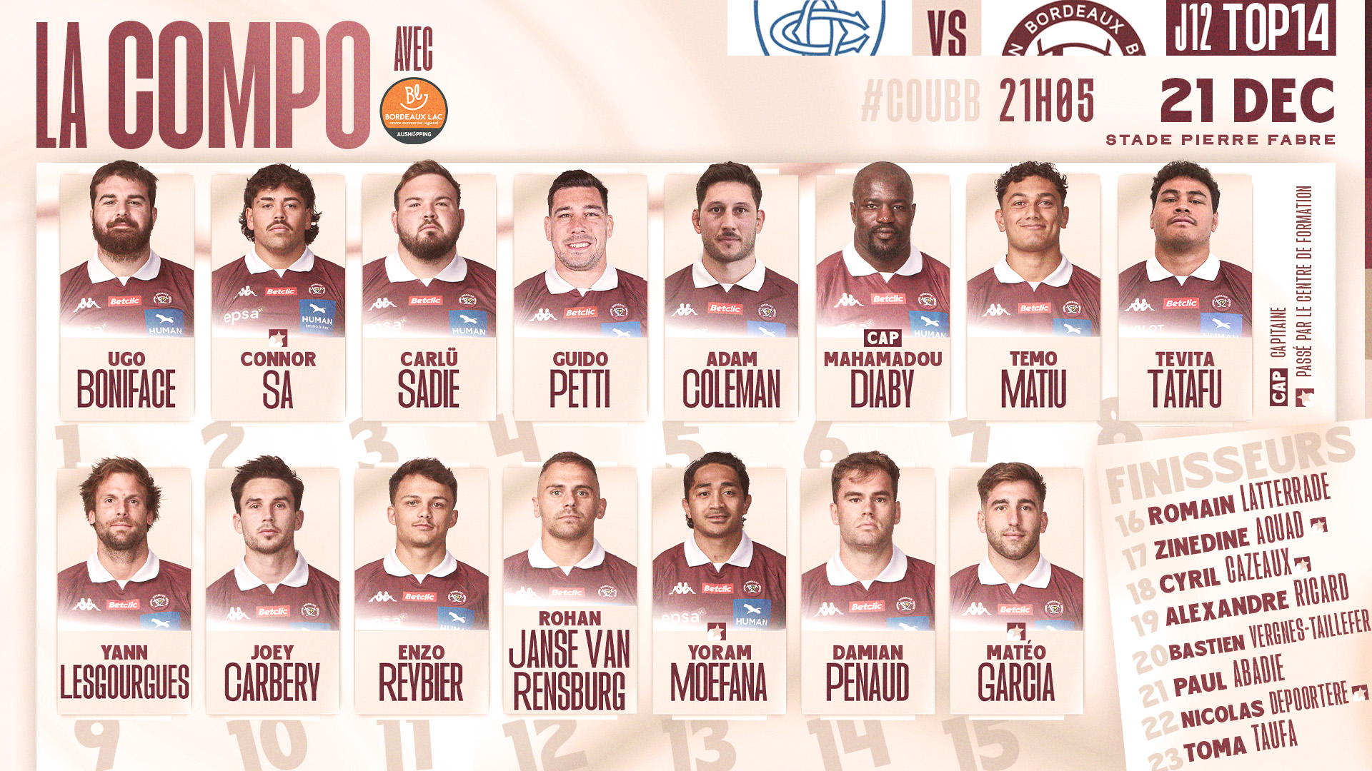 Sur la ligne des 3/4, Enzo Reybier débutera à l’aile, Rohan Janse Van Rensburg sera aligné au poste de premier centre, et Matéo Garcia occupera le poste d’arrière.