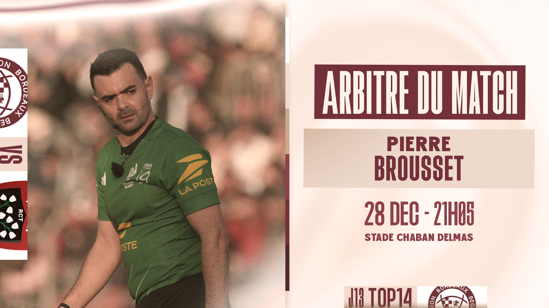 Pierre Brousset dirigera cette rencontre face à Toulon. Il sera assisté de K. Bralley et B. Albert Bonnafous sur les touches ainsi que de D. Grenouillet à la vidéo.