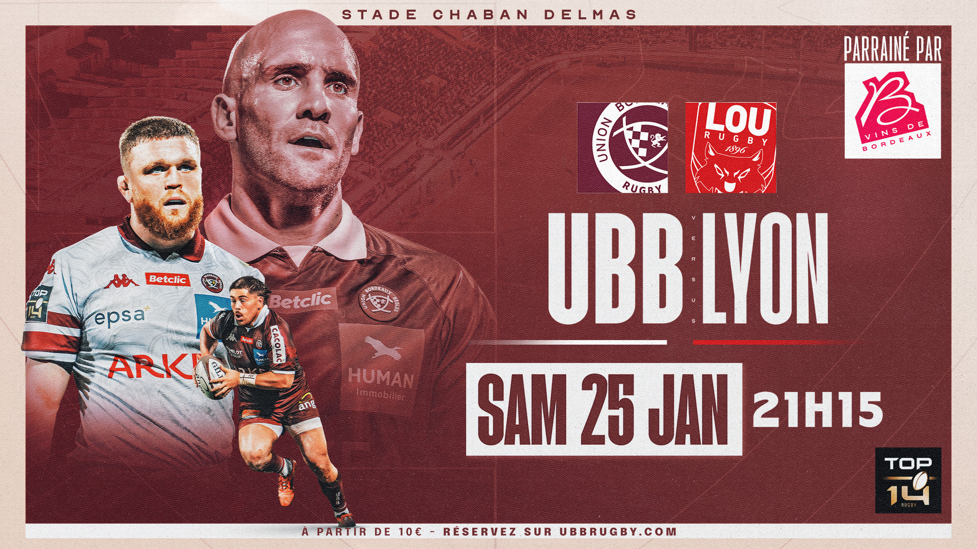 Premier match de TOP 14 de 2025 pour nos Bordeaux & Blanc qui accueilleront les lyonnais du LOU Rugby ! Ne manquez pas cette occasion de venir soutenir notre équipe dans une ambiance festive au Stade Chaban-Delmas.