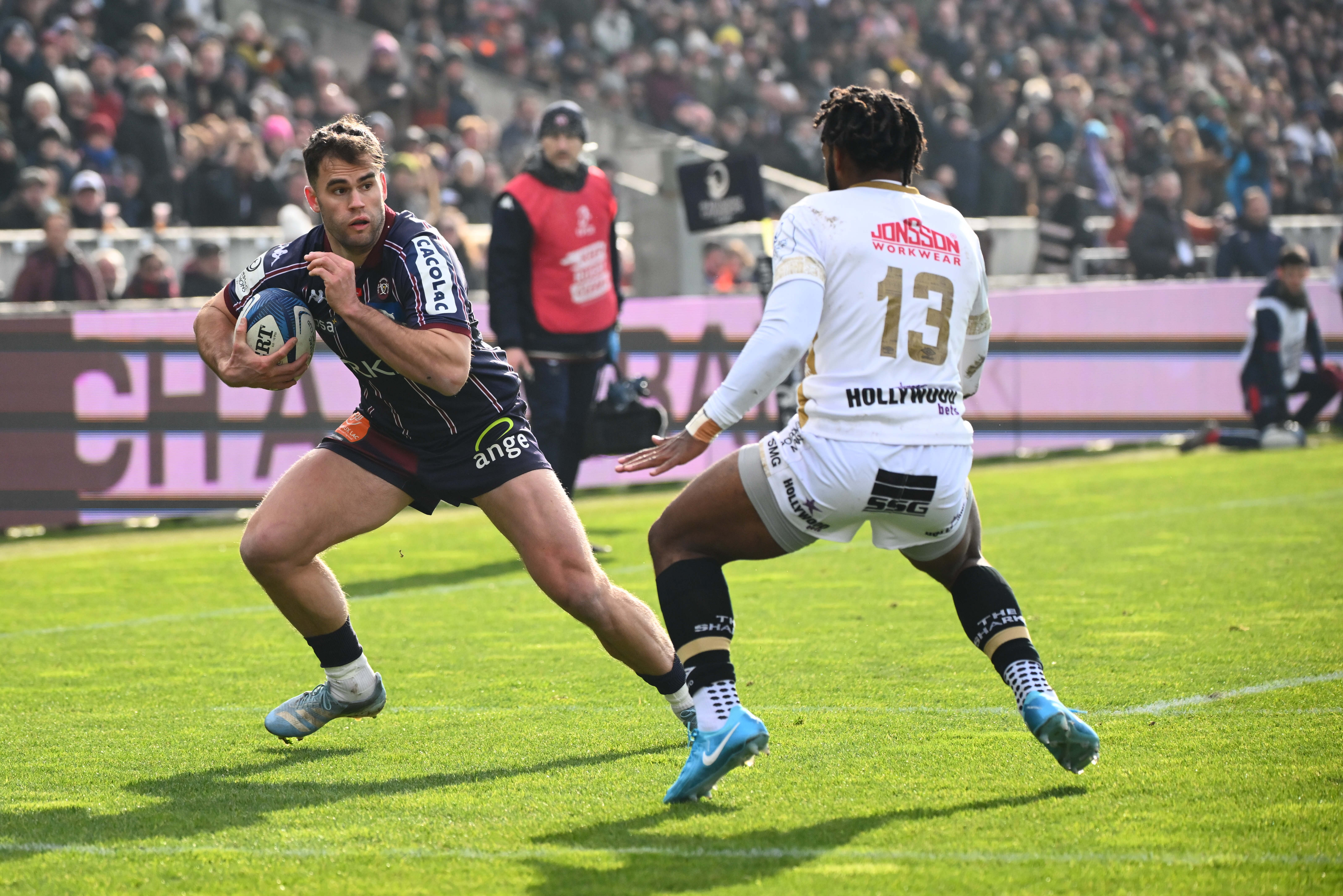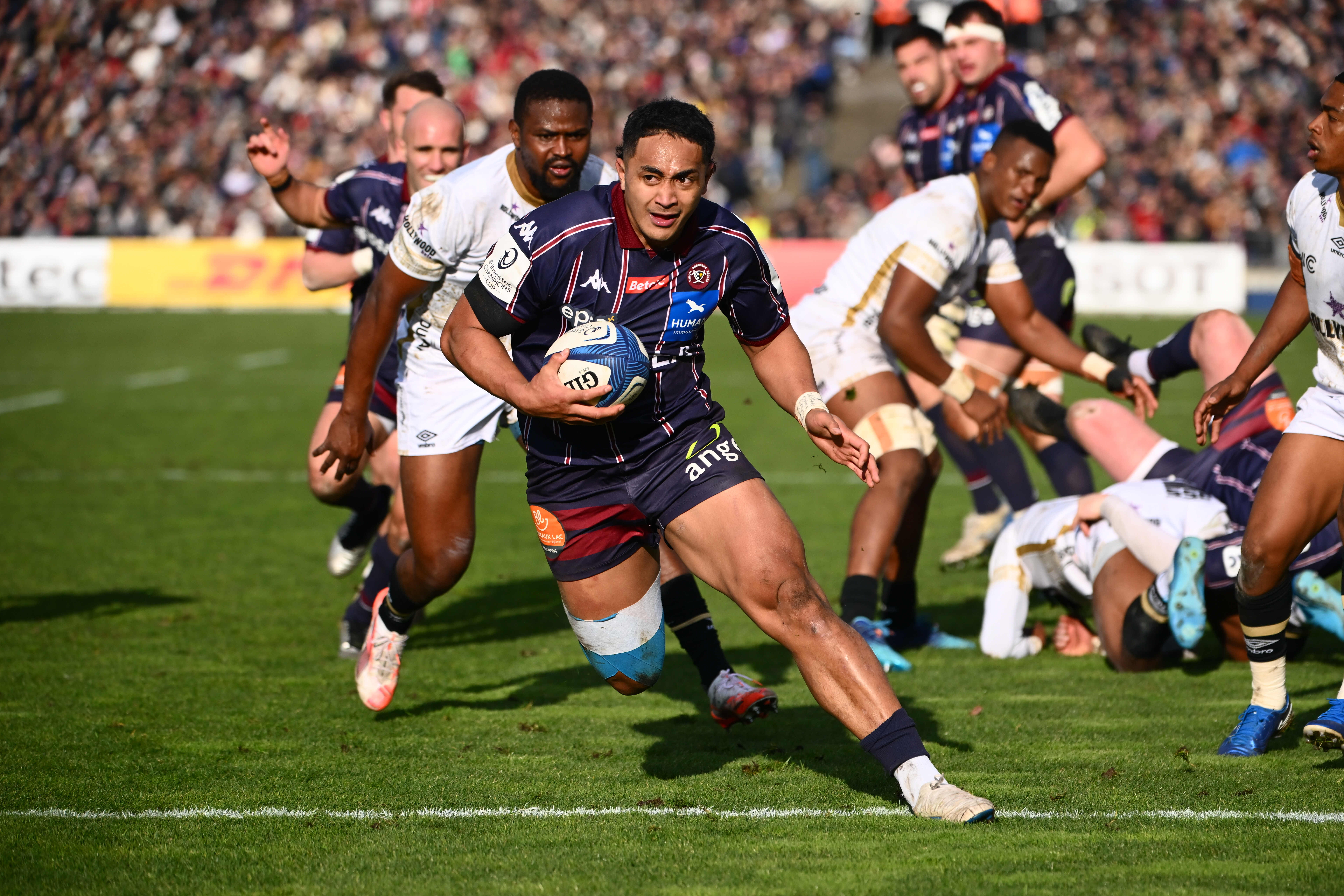 Les Bordeaux & Blanc ne relâchaient pas leur étreinte et Ugo Boniface marquait en force, quelques instants plus tard, à la suite d'un bon travail des avants proche de la ligne des Sharks (33-12 ; 50e), ce qui avec la transformation de Jalibert accentuait encore l'avance de l'UBB. Puis Yoram Moefana, servi parfaitement par Max Lamothe, marquait suite à un ballon porté bien mené par les avants (54e ; 40-12), donnant un avantage irréversible aux hommes de Yannick Bru.