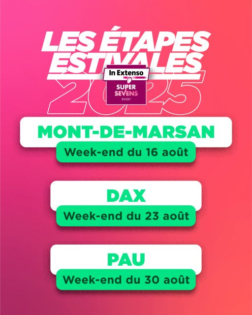 La nouvelle programmation de l’In Extenso SUPERSEVENS version 2025/2026 vient d'être dévoilée et comme l'an dernier les 3 étapes qualificatives se joueront en Nouvelle-Aquitaine.