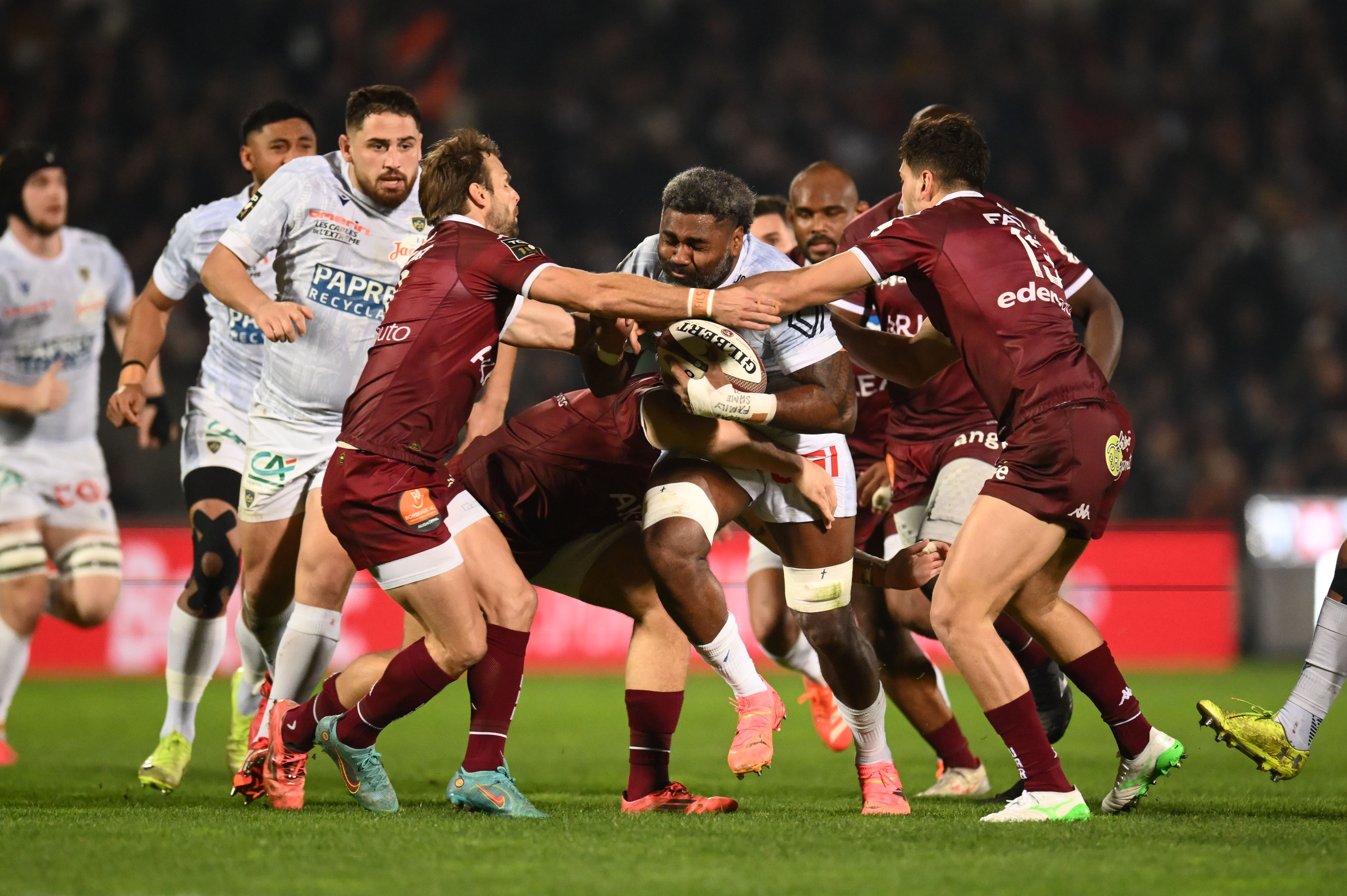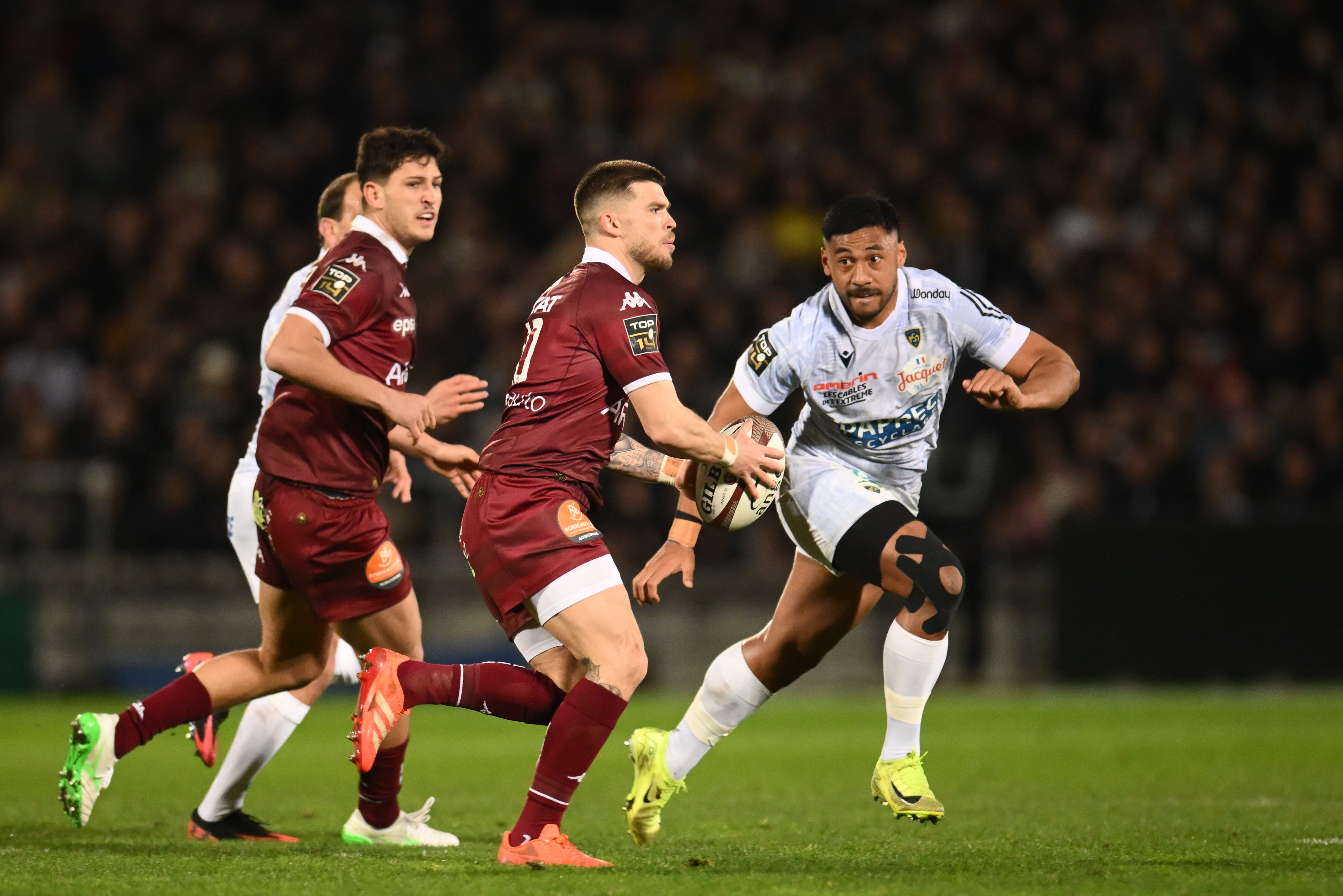 Le moment choisi par les girondins pour se mettre en action, avec d'abord un Penaud à la chasse sur une diagonale de Jalibert, puis à la conclusion d'un ballon arraché dans le ruck suivant pour enfin permettre aux Bordeaux & Blanc de faire le break (62e ; 22-8 après transformation).