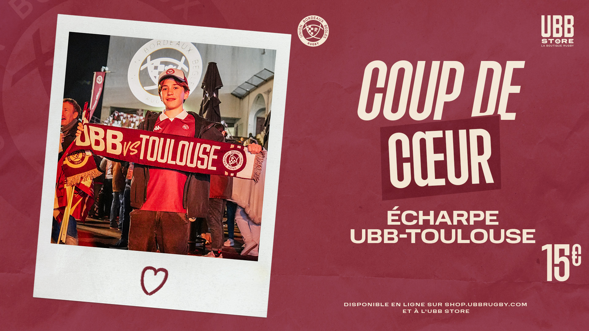 Cet UBB Store éphémère sera ouvert en lieu et place de la boutique des Girondins en avant match uniquement, de 17h à 21h15.