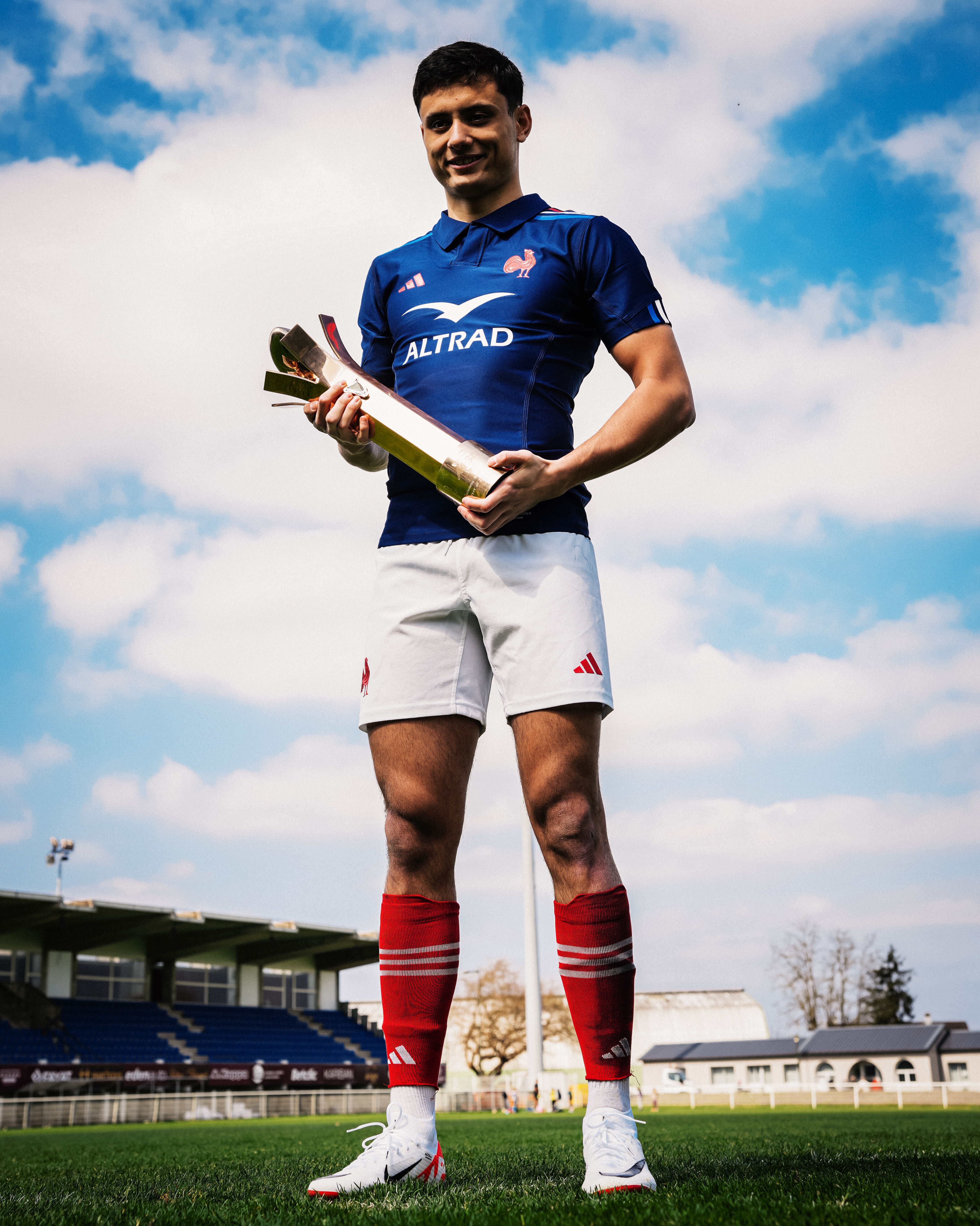 Il a reçu le trophée de meilleur joueur du Tournoi des mains de son capitaine et coéquipier en sélection Maxime Lucu, au Ceva Campus - Stade André Moga.
