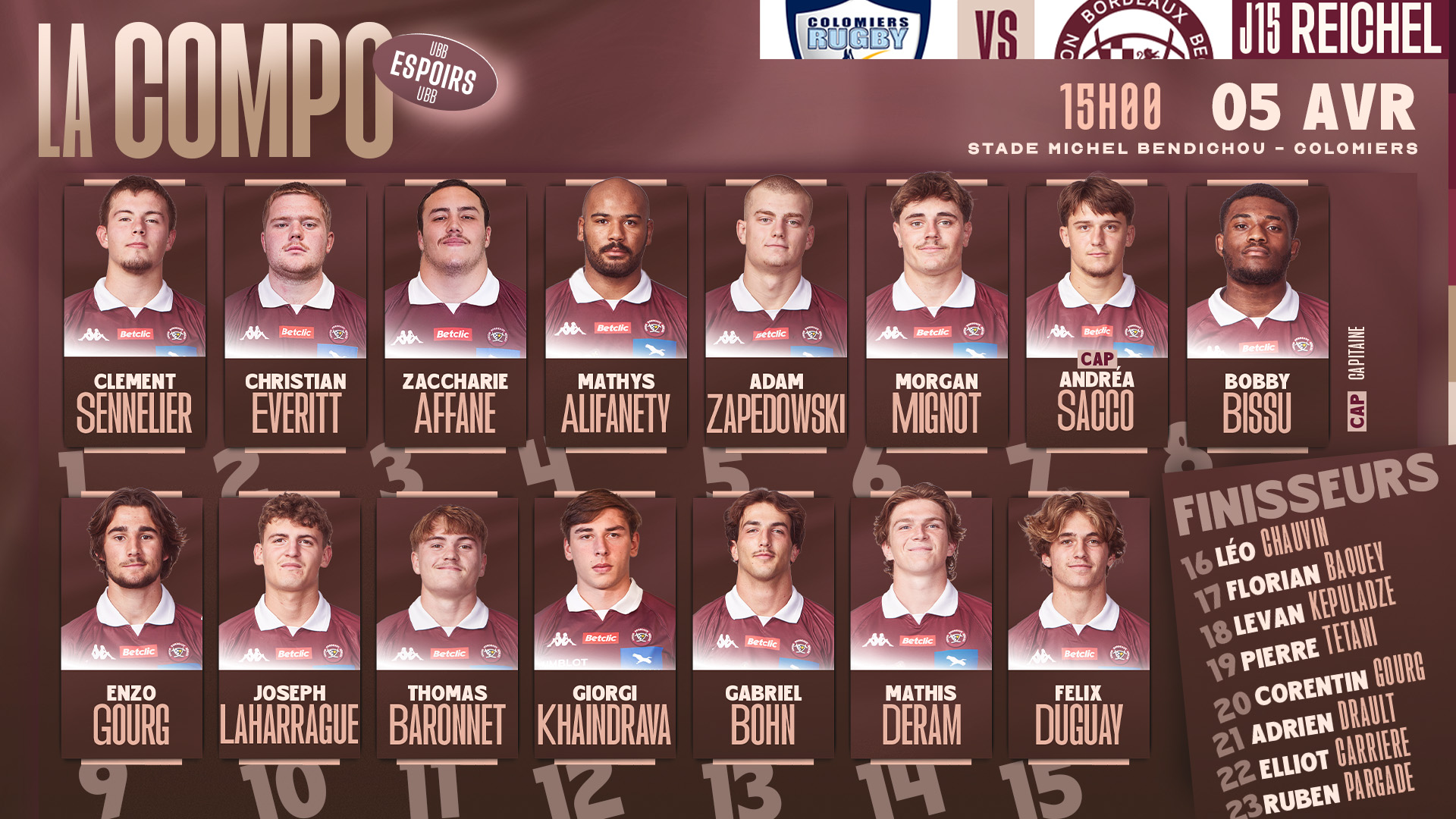 Dernier match avant une nouvelle pause dans ce championnat Espoirs 24-25. Nos jeunes pousses seront en déplacement à Colomiers ce samedi 5 avril à 15h, découvrez leur compo :