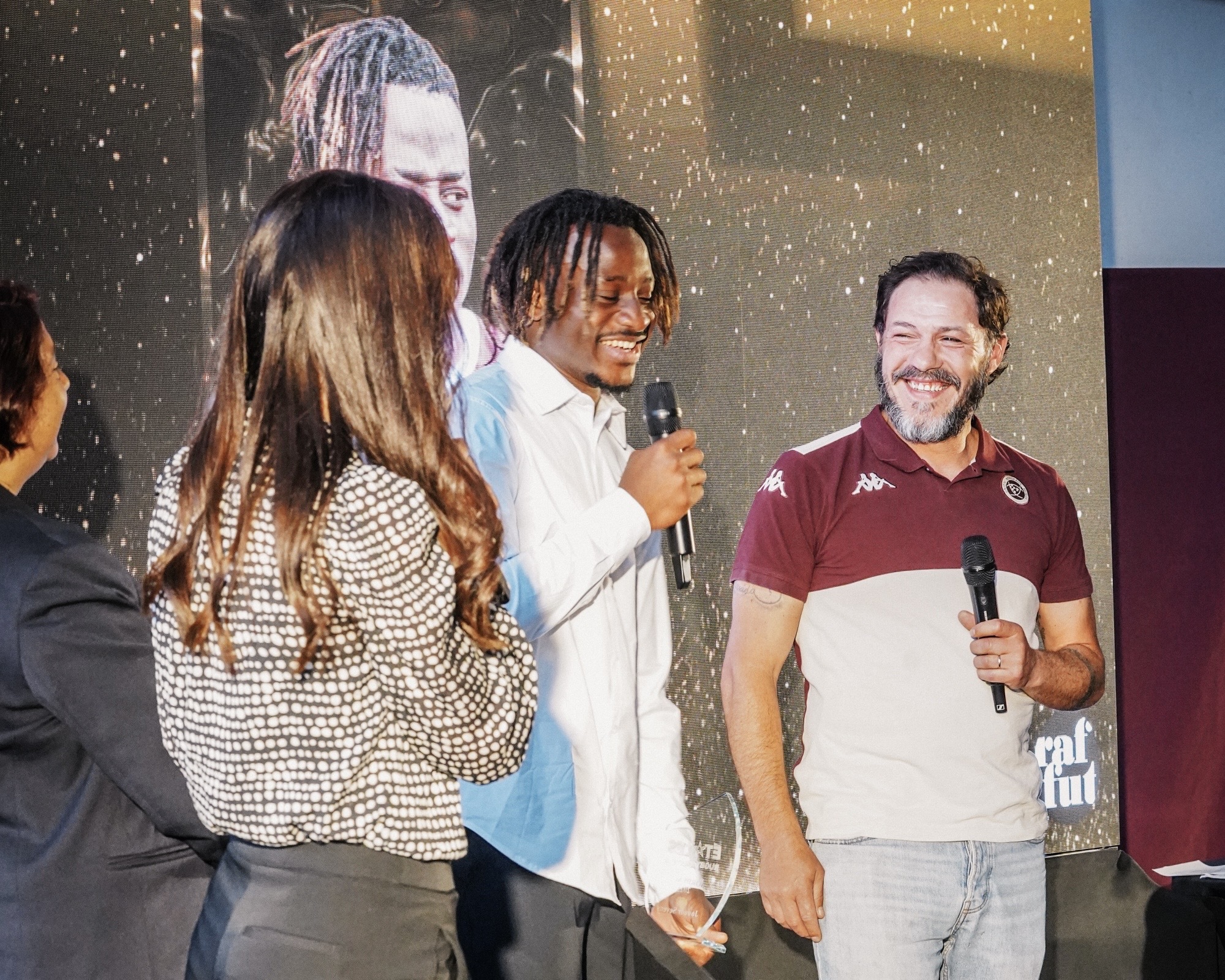 Karembiri Abdoul Gafour joueur du Stade Langonnais et de l'UBB Sevens a reçu le prix du joueur de sept des mains de Laurent FErrères