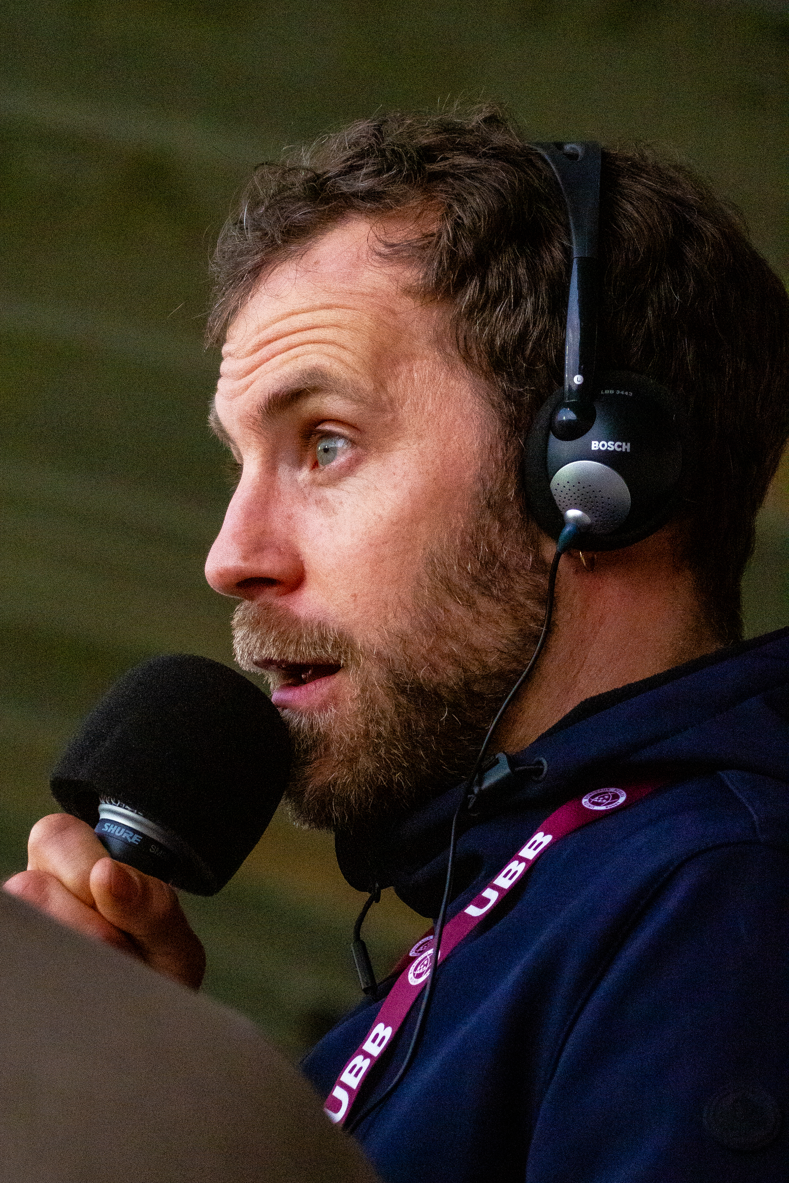 Jérémy Tourneur, président de l'association Tout Terrain, commentant le match contre le Stade Rochelais pour les personnes malvoyantes