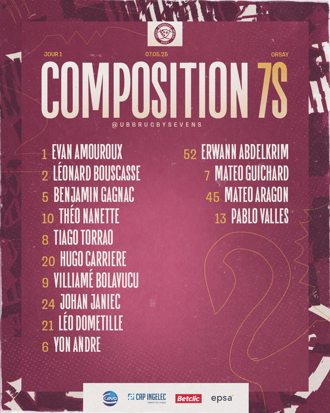 - 3 joueurs sont issus de l'UBB Sevens : Benjamin Gagnac (UA Gujan Mestras), Léonard Bouscasse (US Castillonnaise), Théo Nanette (UBB Sevens)