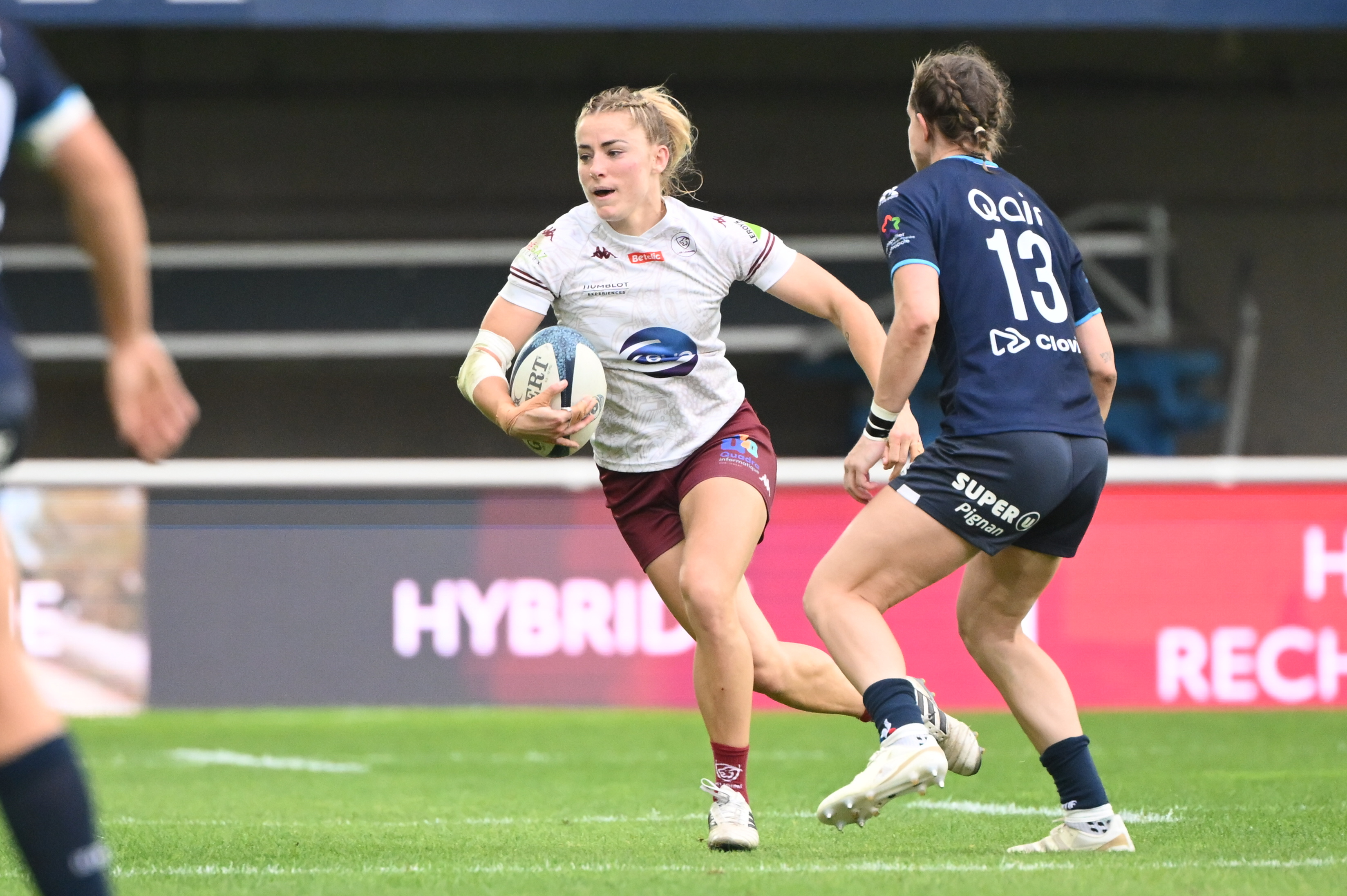Grâce à une entame de match parfaite sur la pelouse du GGL Stadium, les Lionnes mettaient les héraultaises sous pression et marquaient le premier essai de la rencontre par Assia Khalfaoui transformé par Morgane Bourgeois (0-7). Les girondines vont accélérer et inscrire trois essais supplémentaires par Morgane Bourgeois (18'), Louise Lavabre (25') et Joanna Grisez (32') pour virer nettement en tête à la pause (0-28).