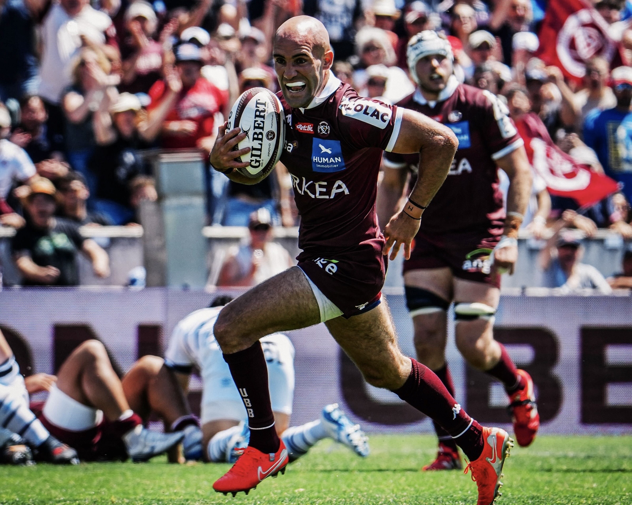 Après la pause, les girondins continuaient sur leur lancée et se montraient dangereux dès le retour des vestiaires ! En effet sur un ballon porté bien mené consécutif à une pénaltouche, Connor Sa partait dans le fermée et marquait en force le 5e essai des siens (34-14 ; 45e). Un essai qui donnait même provisoirement le bonus offensif aux Bordeaux & Blanc.