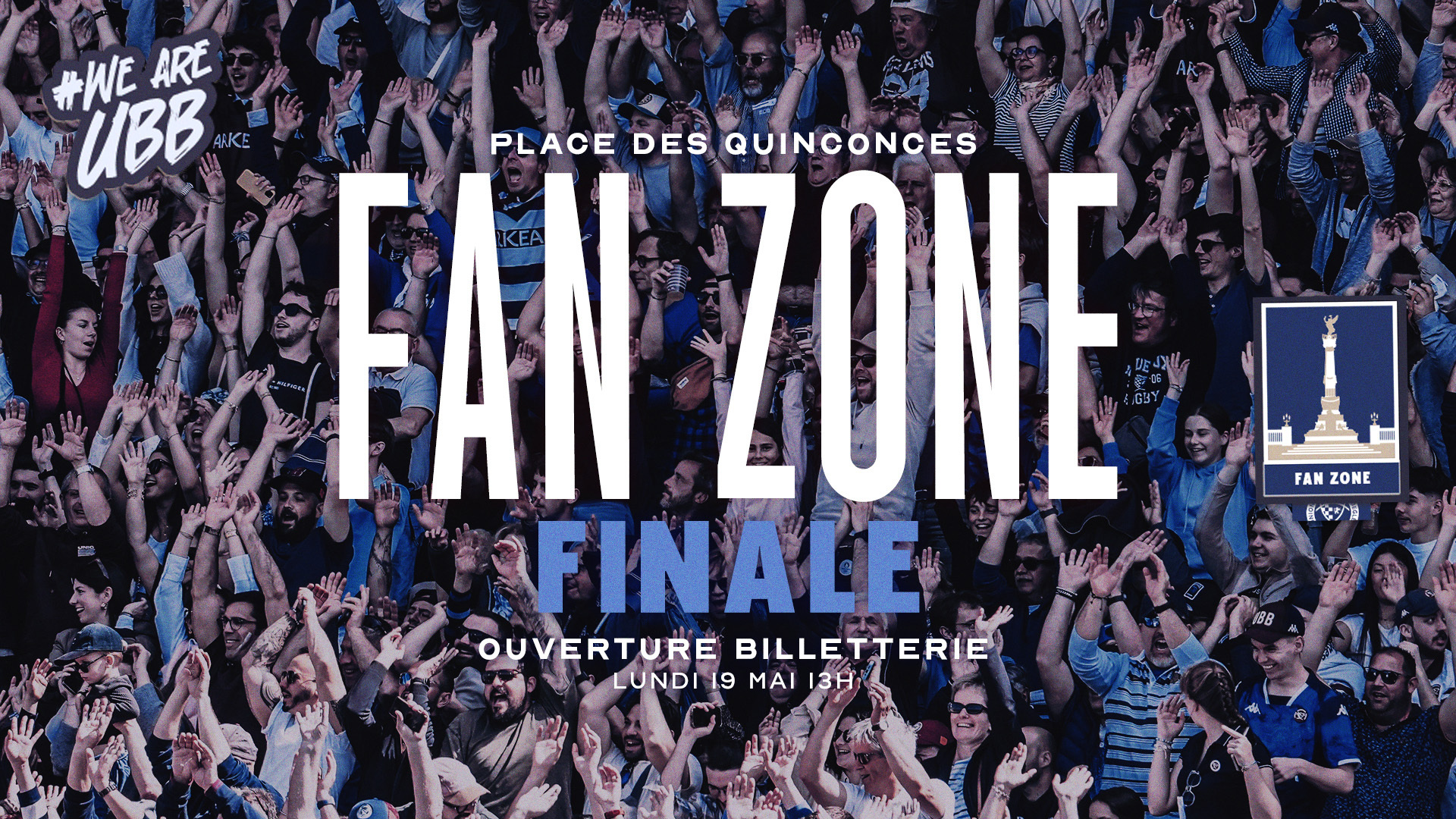 La Ville de Bordeaux et Bordeaux Métropole organisent la retransmission de la finale de l'Investec Champions Cup sur la Place des Quinconces ce samedi 24 mai. Une billetterie gratuite sera mise en place pour l'occasion et ouvrira ce lundi à 13h.
