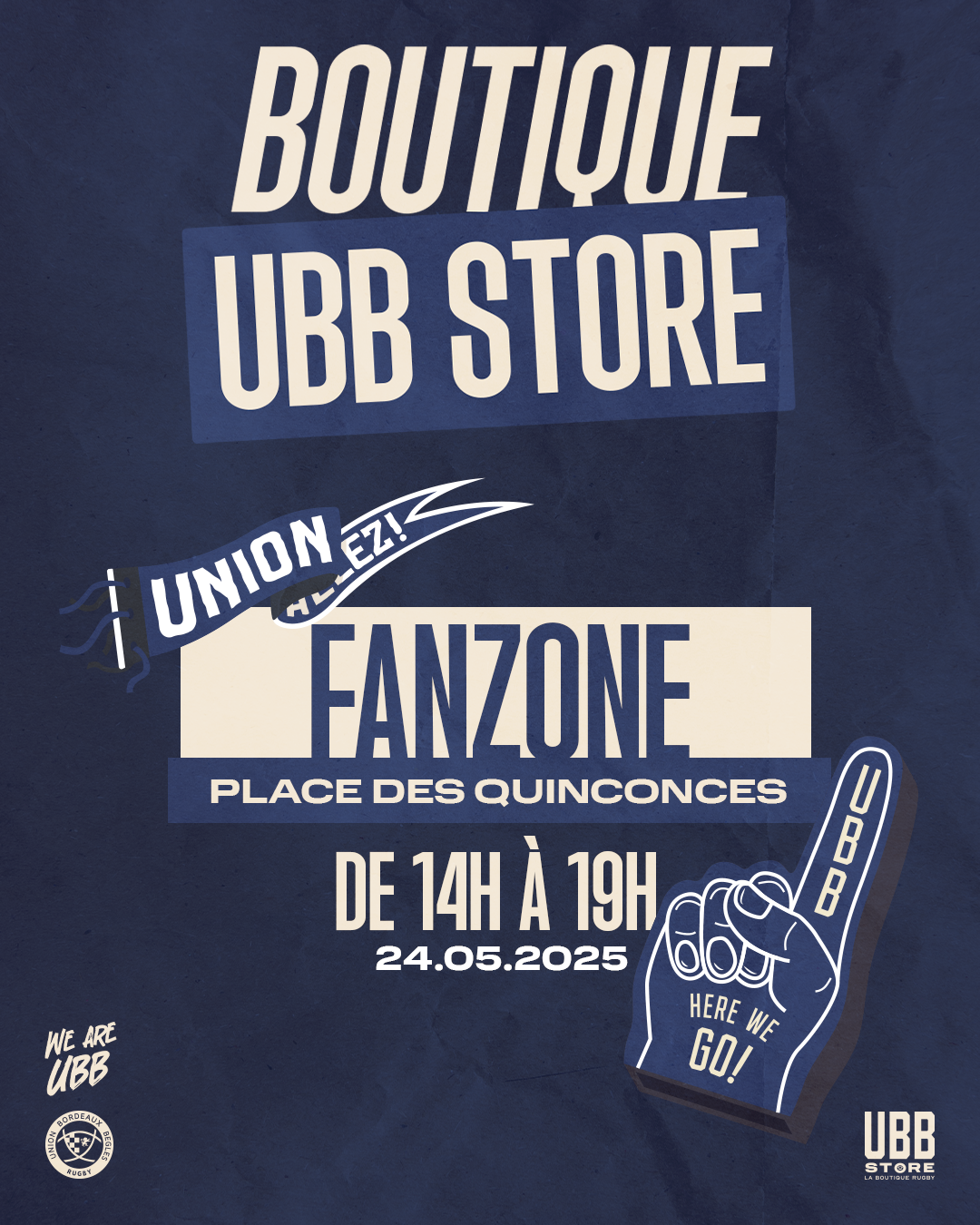 Notre boutique de l'UBB Store sera présente sur la Fan Zone des Quinconces ce samedi. Vous y retrouverez l'ensemble des produits de notre collection Europe We Are UBB !