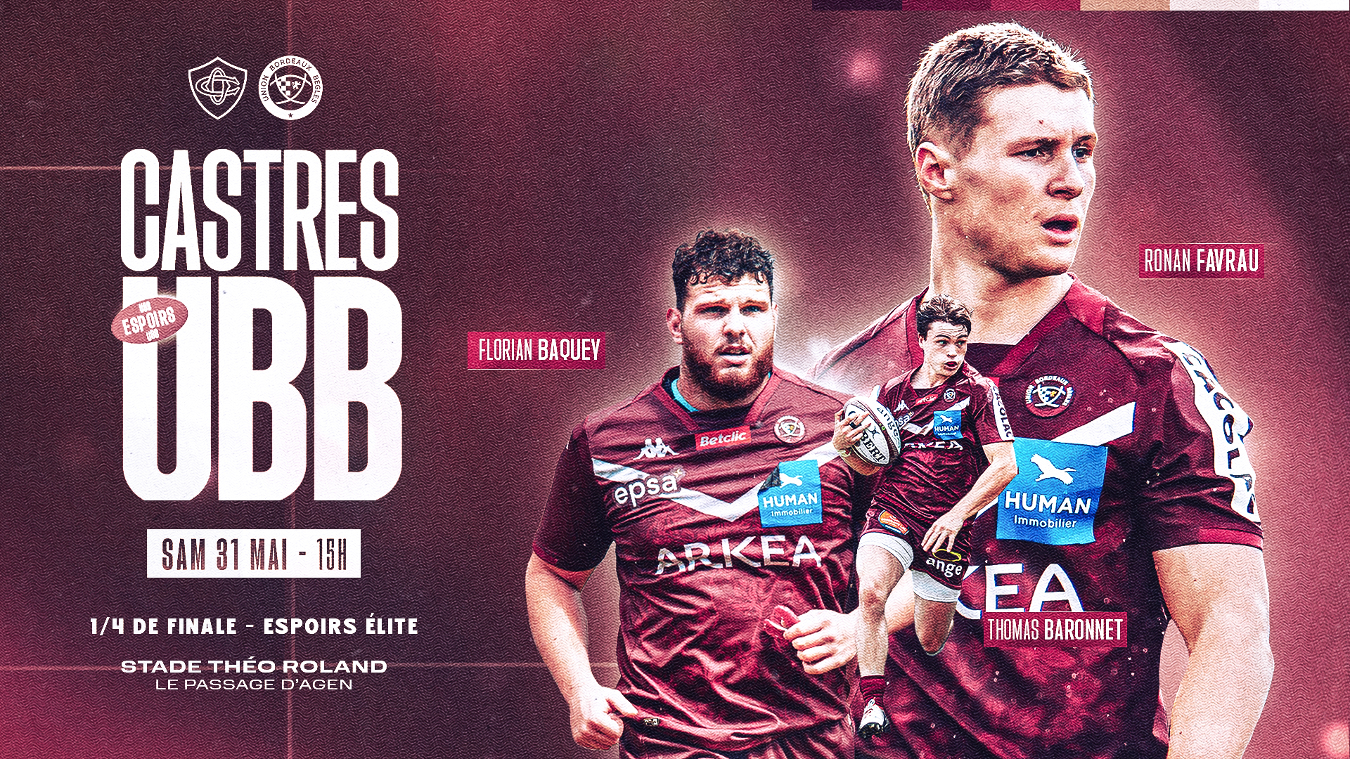 La rencontre se déroulera samedi 31 mai à 15h au Stade Théo Roland du Passage d'Agen, n'hésitez pas à venir les soutenir nombreux pour les aider à atteindre les demi-finales.