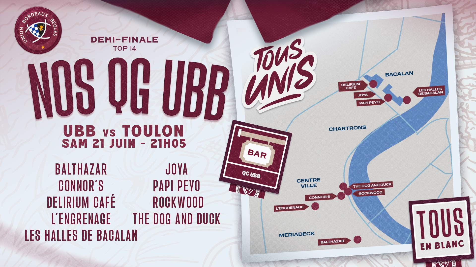 Découvrez les meilleures adresses pour vivre la demie entre supporters de l'UBB ! Voici la liste de nos bars "QG UBB" :