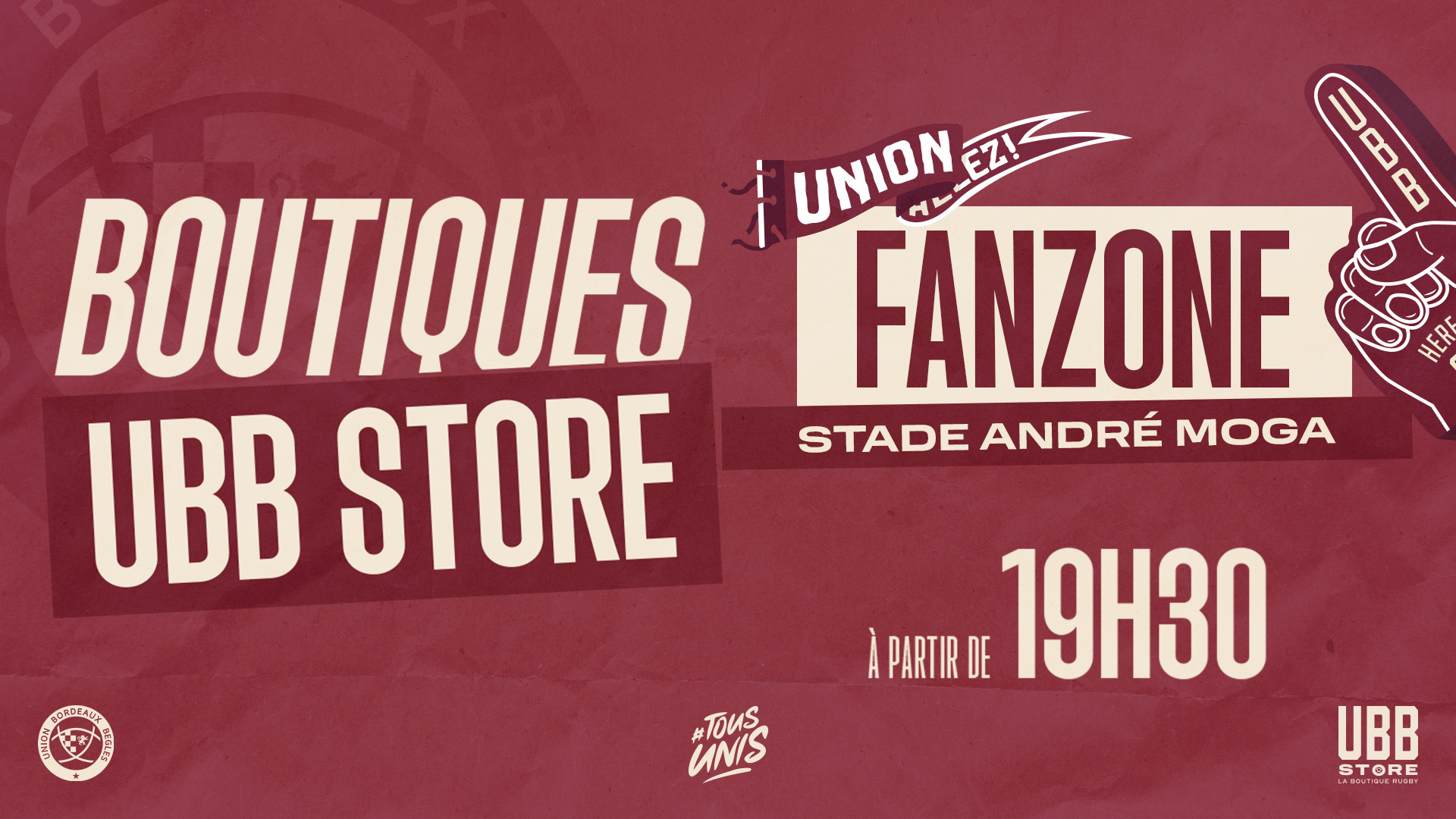 Notre boutique de l'UBB Store sera présente sur les Fan Zones des Quinconces et du Stade André Moga ce samedi. Vous y retrouverez notamment l'ensemble des produits de notre collection ¨Phase finale TOP 14 - Tous Unis !