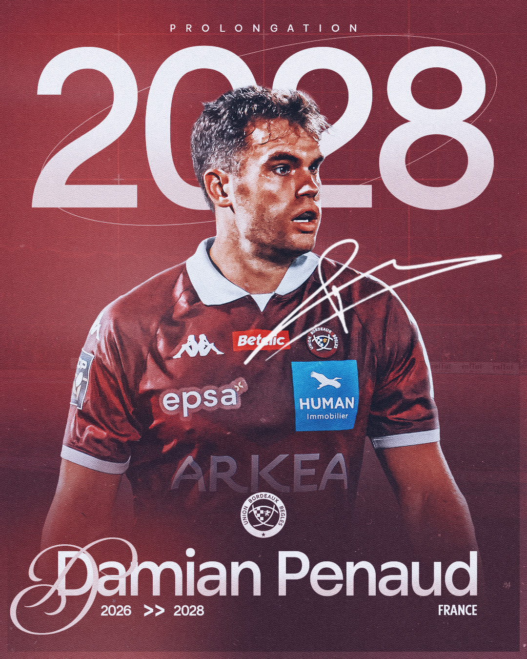 Arrivé au club en 2023, notre ailier international français Damian Penaud prolonge l’aventure girondine jusqu’en 2028 !