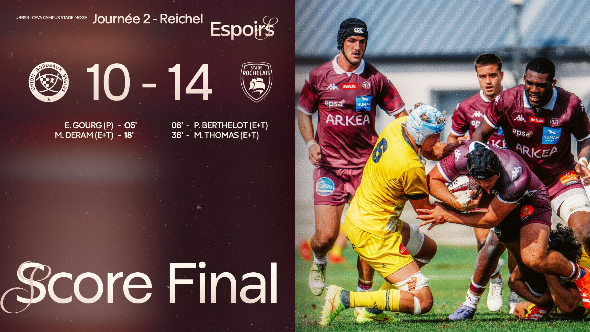 Il aurait pu y avoir une issue plus heureuse pour nos Girondins, qui obtenaient une pénalité à la 80e minute, à trois mètres seulement de la ligne rochelaise. Mais malgré toute leur envie, les Maritimes reprenaient le ballon sur un contre-ruck, scellant ainsi la fin du match.