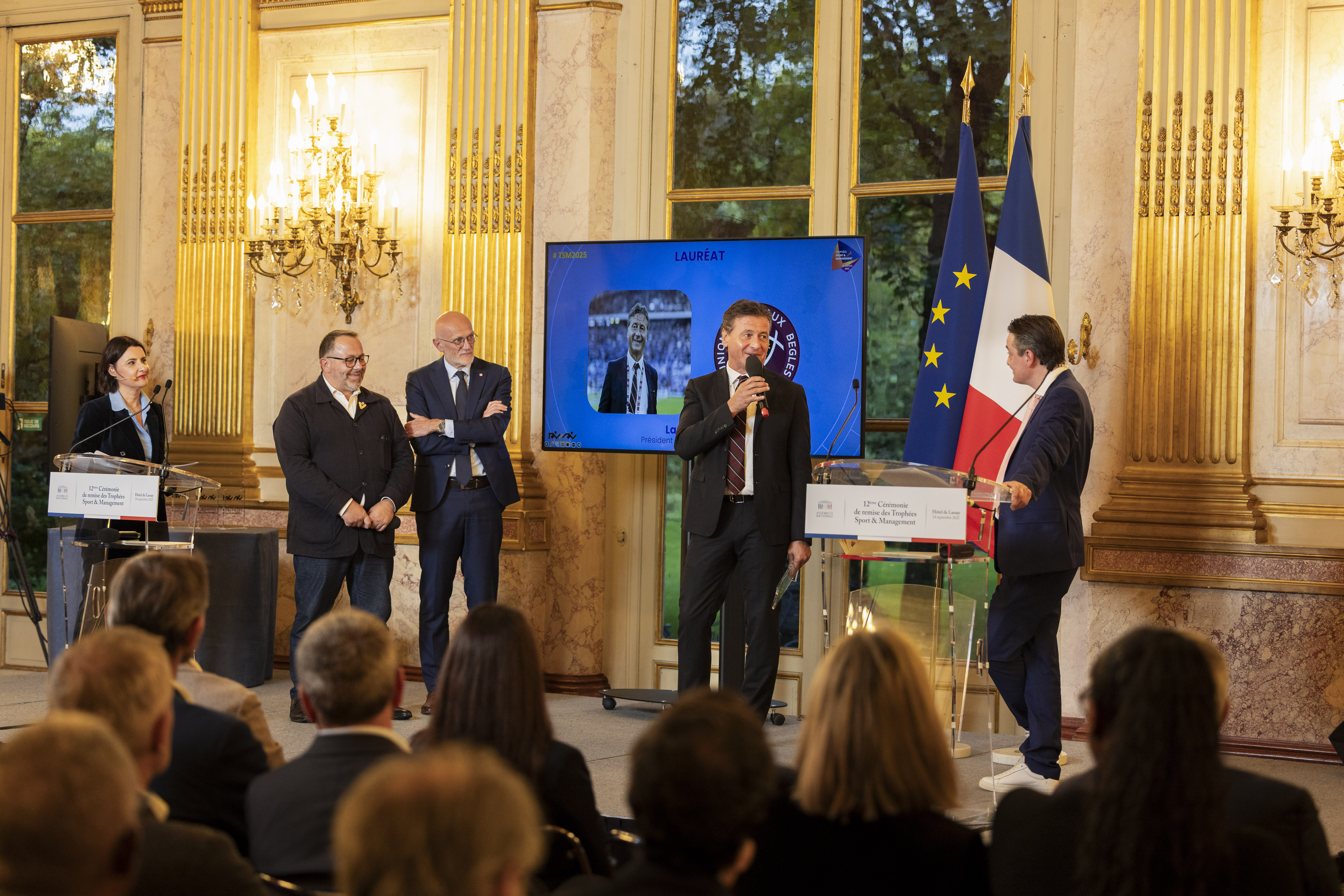 Ce mercredi 24 septembre, le monde du sport était réuni à l'Hôtel de Lassey, dans les bâtiments de l'Assemblée Nationale à Paris, pour la 12ème cérémonie des Trophées Sport & Management. À l'occasion de cette soirée, notre président Laurent Marti s'est vu remettre le trophée du dirigeant sportif de l'année.