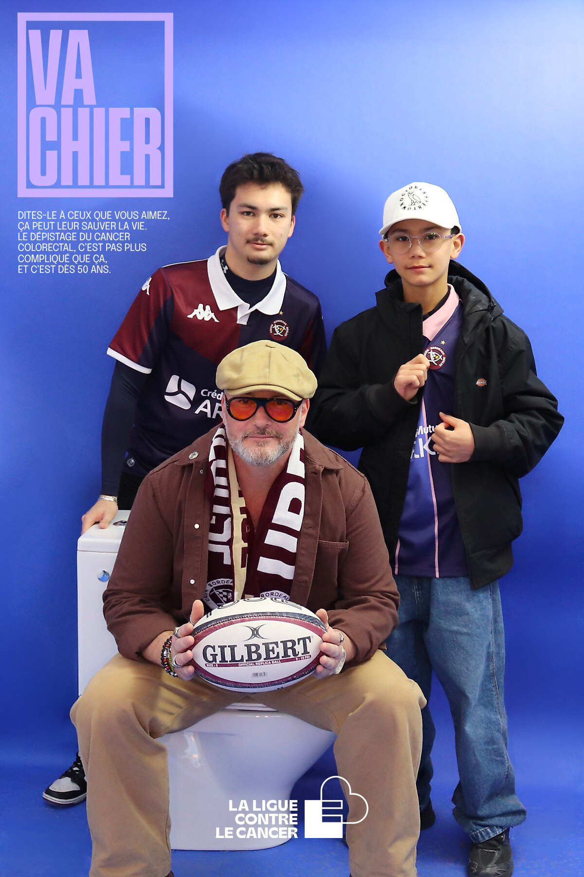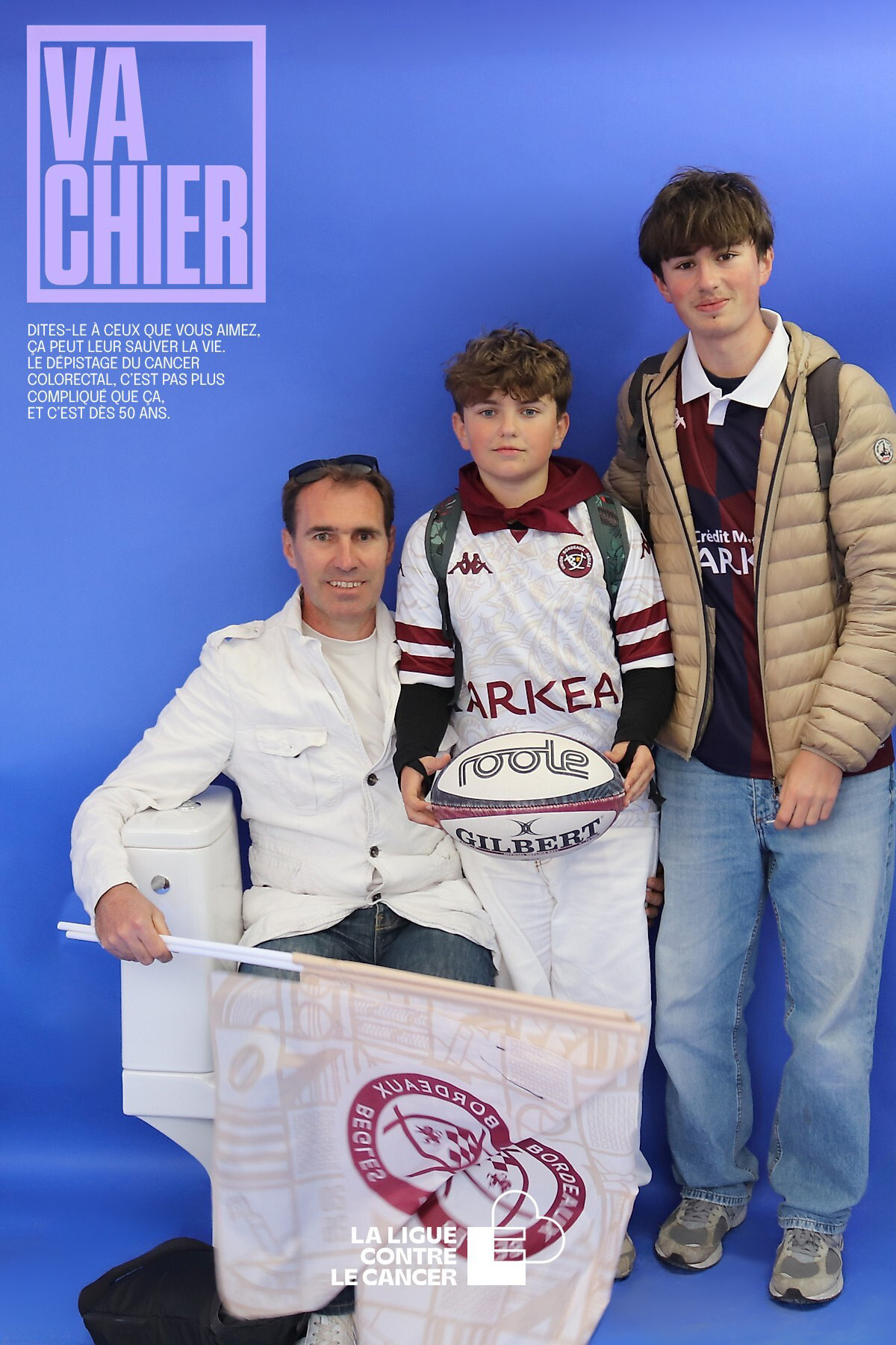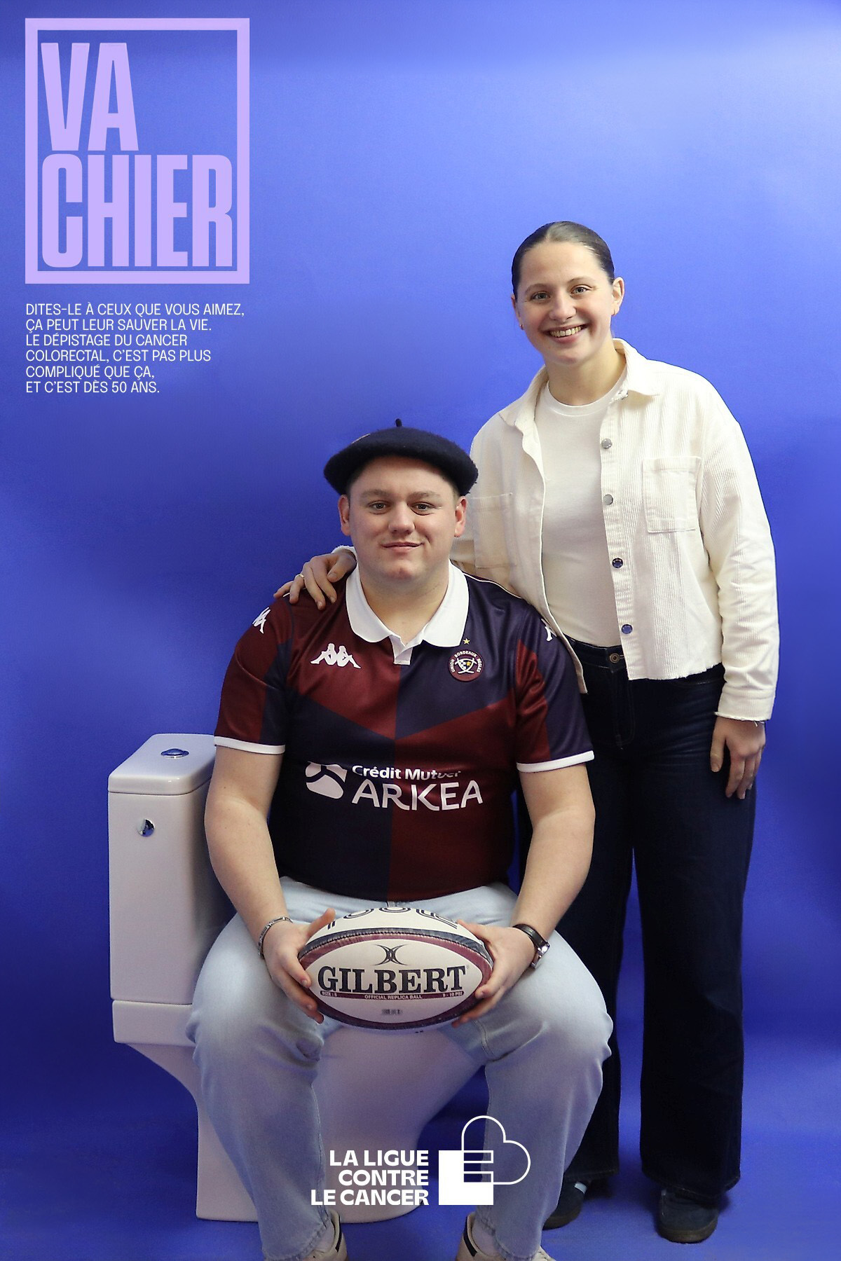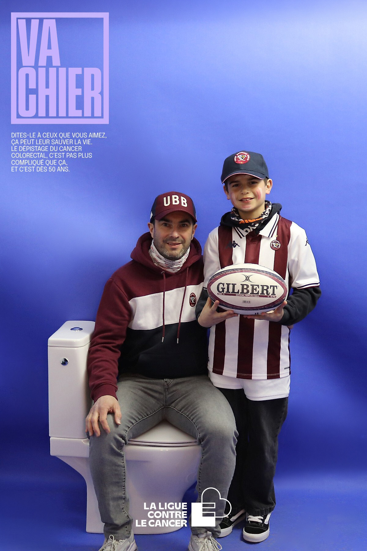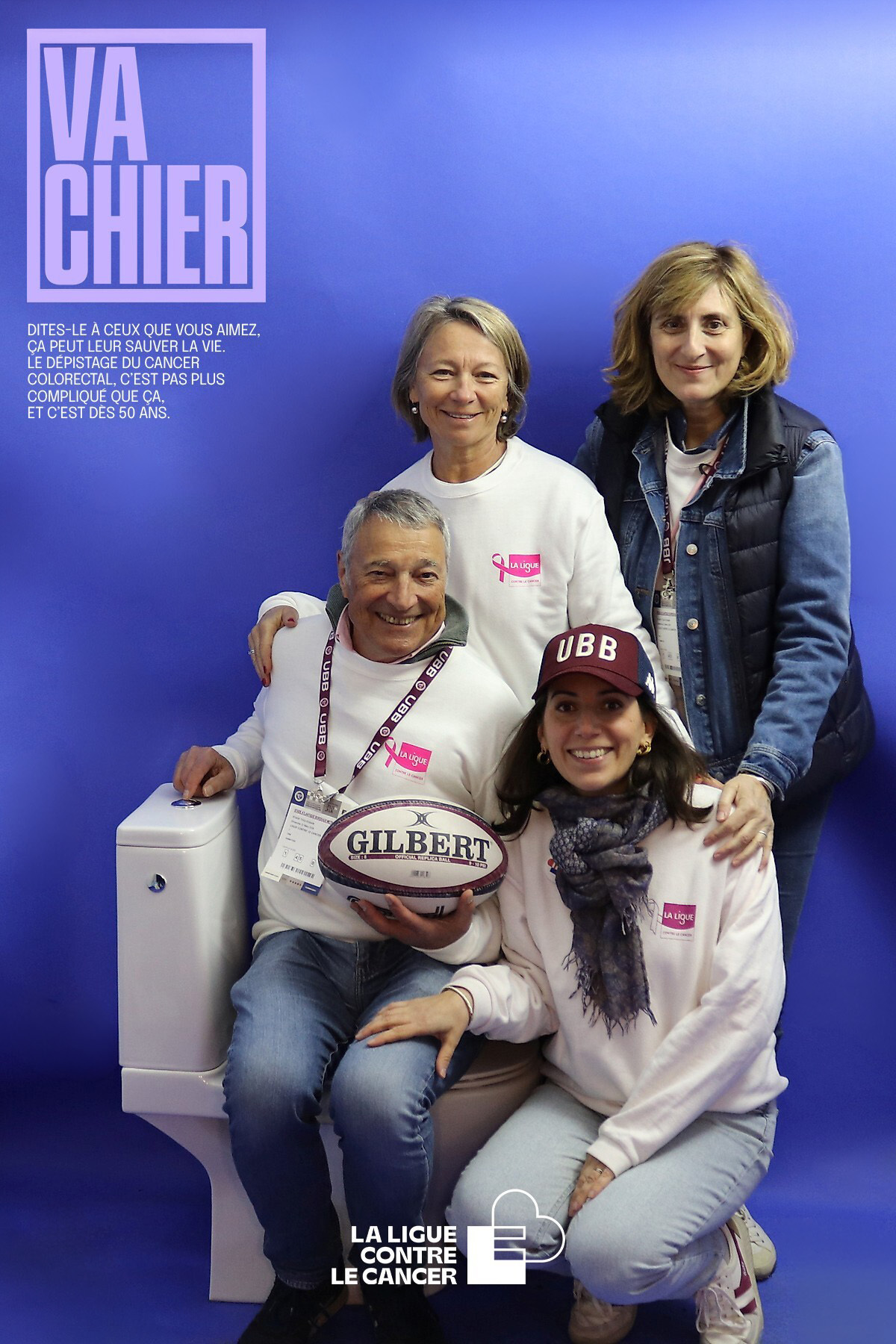 En prolongement de la campagne nationale Mars Bleu contre le cancer colorectal, la Ligue contre le cancer et l’UBB ont innové en mettant en place un Photobooth sur la fan zone du stade ce dimanche soir. Notre emblématique pilier Ben Tameifuna, qui s'était prêté au jeu en mimant la fameuse série d’affiches de la campagne « Va chier », invitait les supporters à poser à leur tour.