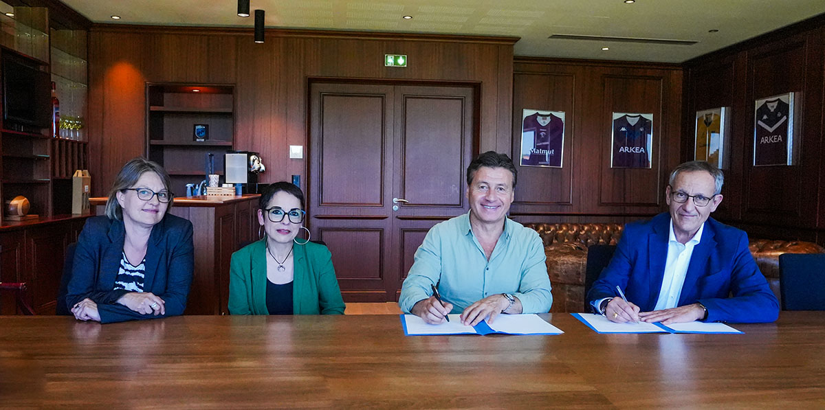 Ce midi, le club de l'UBB et France Travail ont officialisé leur collaboration par la signature d'une convention de coopération. Celle-ci a été signée par Laurent Marti, président de l'UBB, ainsi qu'Alain Mauny, Directeur Régional de Nouvelle-Aquitaine, Stéphanie Caillat Directrice de l'Agence de Bègles et Célia Rodrigues Minau, Directrice Territoriale de la Gironde.