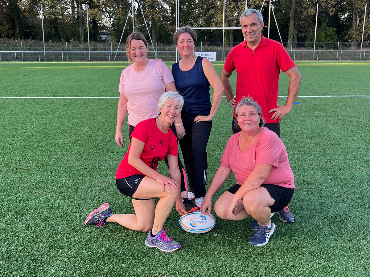 Rejoignez les tous les jeudis de 18h à 19h au stade Marie Houdré à Mérignac pour pratiquer du rugby à 5 santé dans un esprit de convivialité.