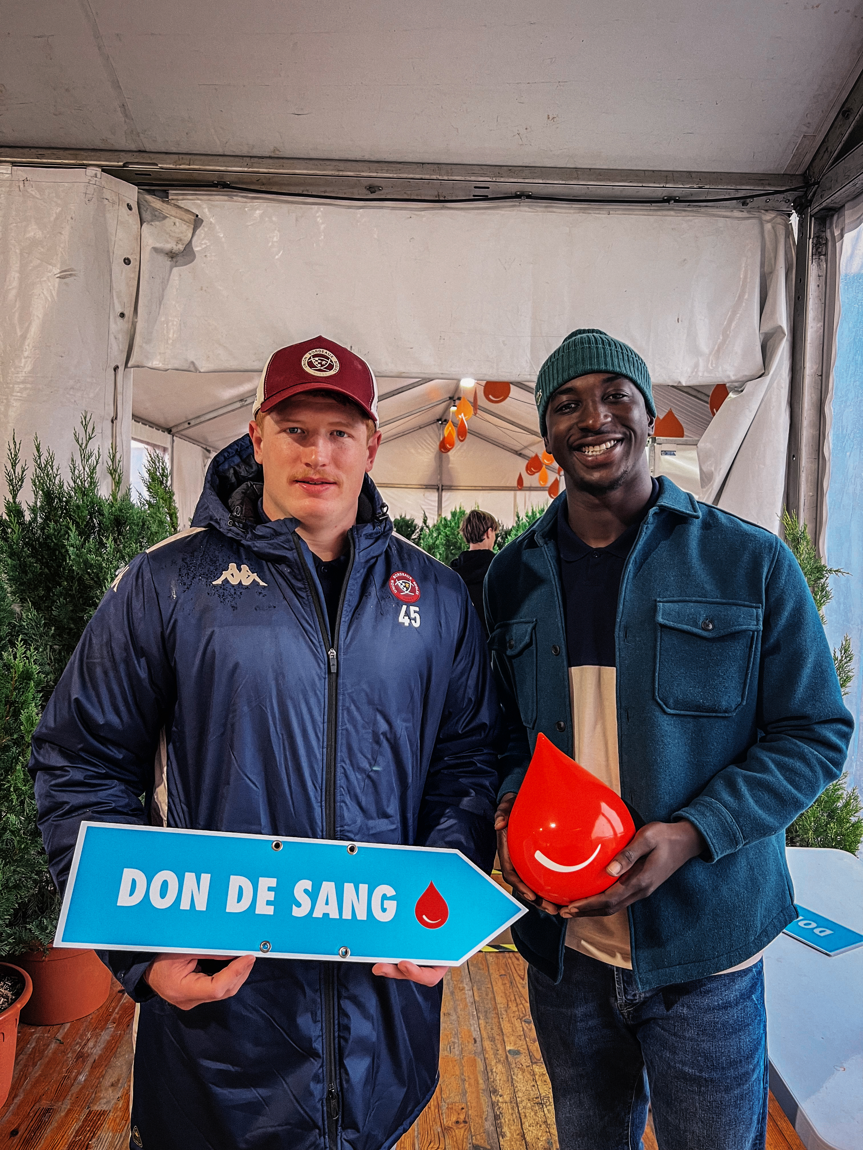 Ce jeudi, nos deux jeunes joueurs sont venus au soutien de l'opération "Sang pour Sang Campus", organisée par l'EFS, en compagnie de notre mascotte Léo. Ils ont notamment pu encourager les donneurs et échanger avec les bénévoles mobilisés.