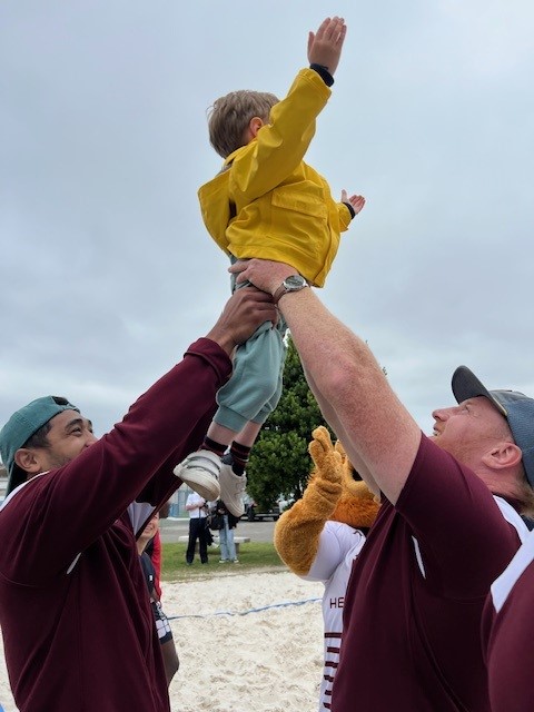 Le jeune Marius porté par Yoram Moefana et Maxime LamotheÀ lire également : Un XV du coeur pour lancer le fonds de dotation Coeur de Rugby (janvier 2024)