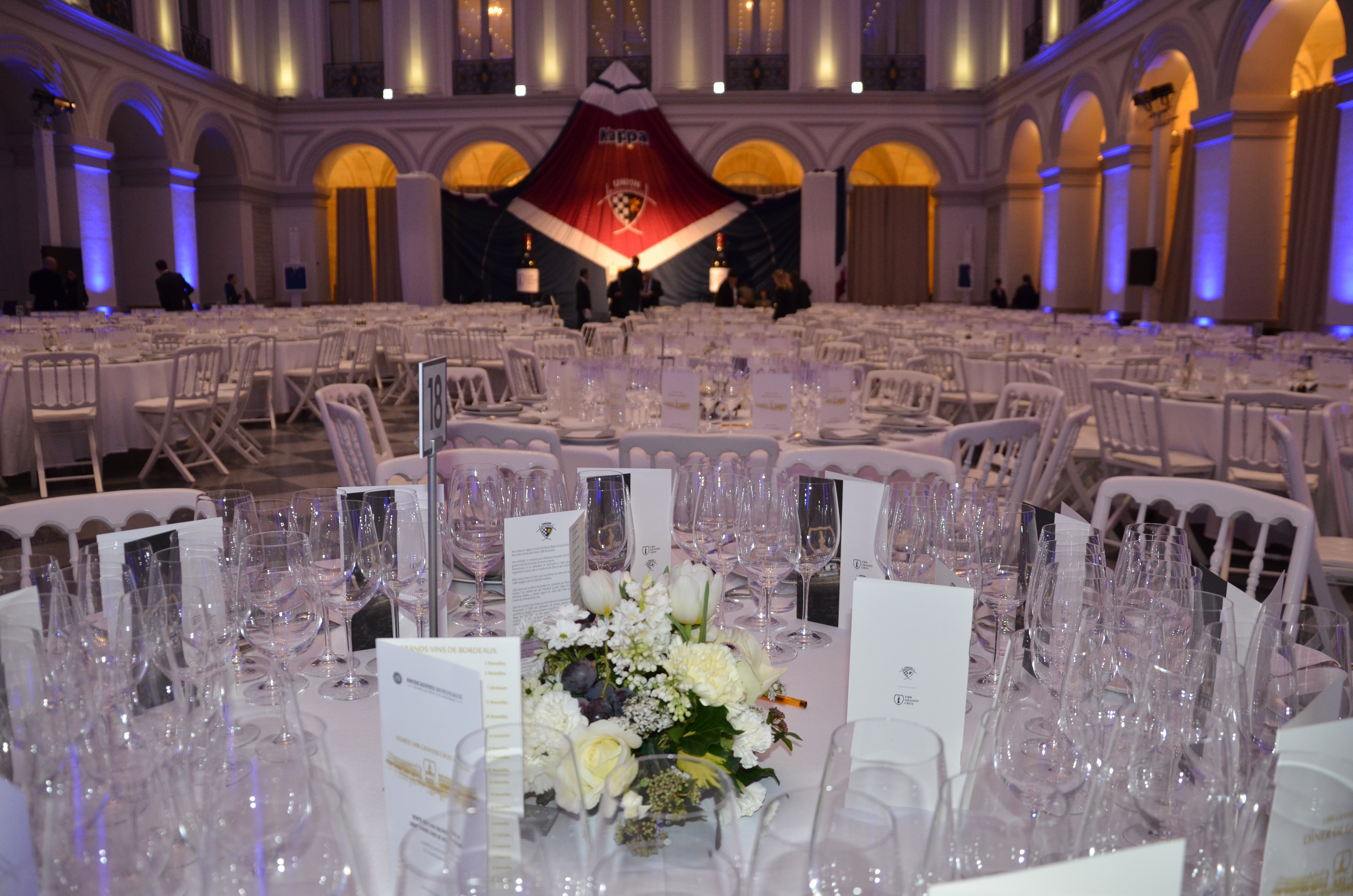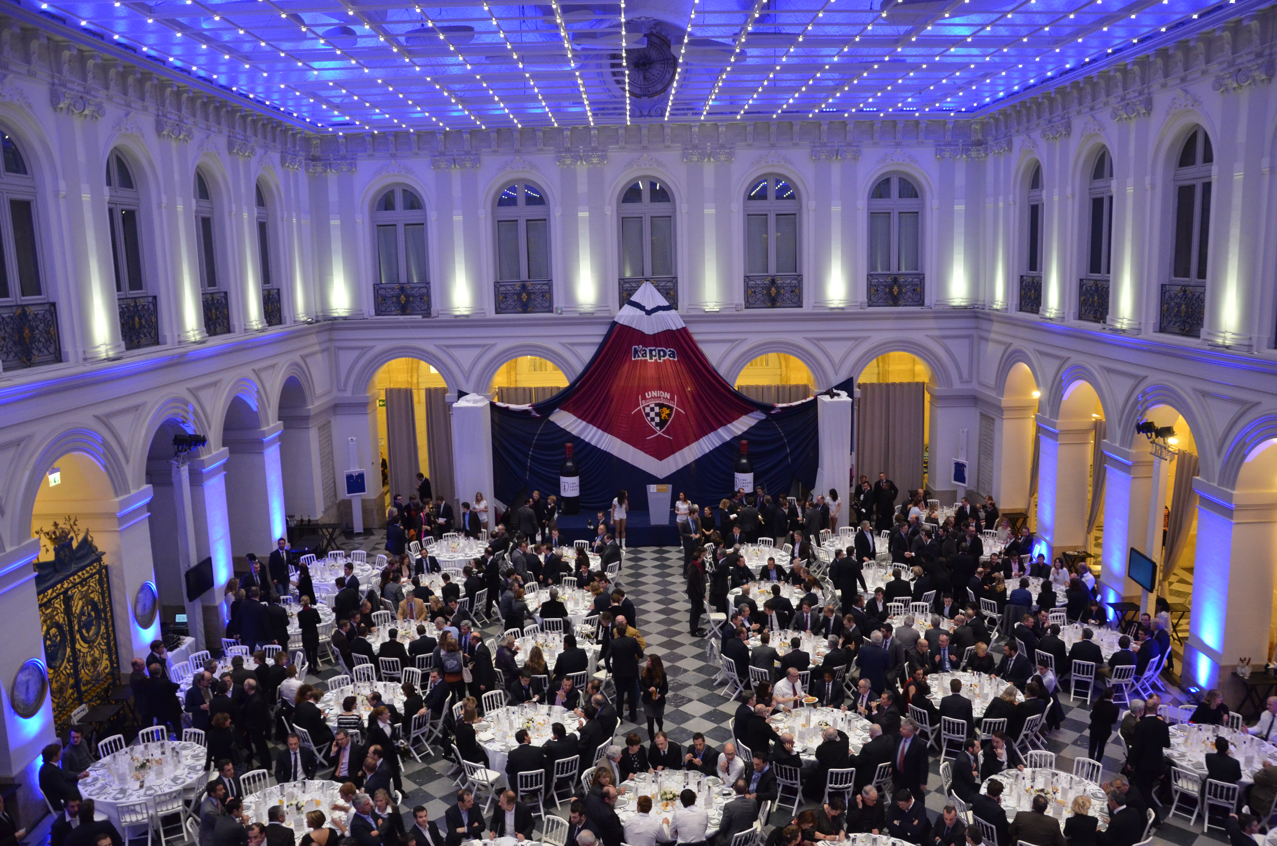 Jeudi soir, s'est tenu le premier Gala UBB Grands Crus, à l'atrium de la Chambre de Commerce et de l'Industrie, place de la Bourse, à Bordeaux. La salle avait revêtu ses plus beaux atours pour accueillir les membres de l'association, le staff et les joueurs du club, autour d'un dîner signé du chef Philippe Etchebest.