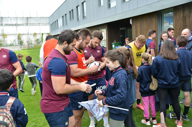 Ils ont ensuite suivi l'entrainement du jour dans les tribunes du stade André Moga. Après cet entrainement, les enfants ont demandé des dédicaces aux joueurs et les parents immortalisé les photos souvenirs.