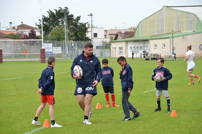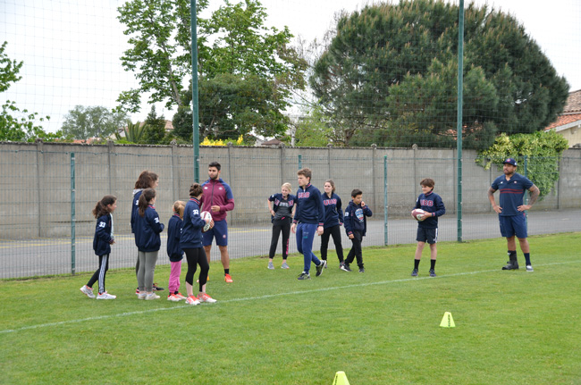 Les enfants ont pu s'adonner à des ateliers rugby répartis par deux groupes de 10 enfants. Pendant que certains faisaient des passes en présence de Romain Buros et Afa Amosa, d'autres réalisaient un parcours ludique avec Adrien Pélissié. La session avec les joueurs s'est terminée par un match à toucher ou chacun des enfants a profité des conseils de leurs entraîneurs du jour.