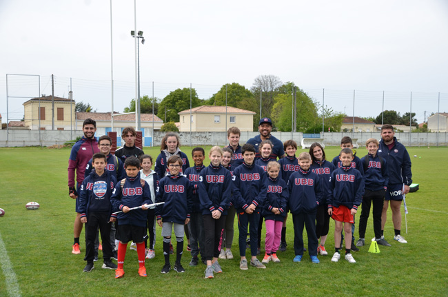 Après avoir enfilé leurs vestes UBB, ils ont foulé la pelouse du terrain d'entrainement accueillis par 3 joueurs professionnels de l'UBB : Adrien Pélissié, Romain Buros et Afa Amosa.